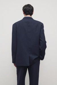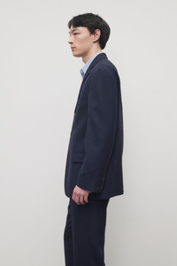 Single-breasted tailored jacket in lightweight wool suiting with notch lapel, softly padded shoulders, front flap pockets, and front button closure. Crafted from sustainable virgin wool, the refined fabric offers both timeless appeal and modern function. More information - Interior double-welt pockets - 100% Virgin Wool - Fully lined in 100% Silk twill - Made in Italy - Style: 1331W4322NVY