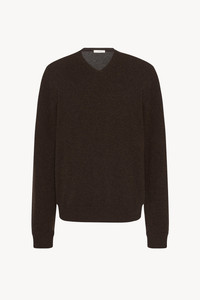 Classic v-neck sweater in soft cashmere with relaxed fit and ribbed neckline, cuffs, and hem. More information - 100% Cashmere - Made in Italy - Style: 1014Y556MBR