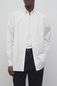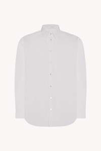 Tailored button-up shirt in woven cotton poplin with exposed placket, horn button closure, and curved hem. More information - 100% Cotton - Made in Italy - Style: 755W2439WHT