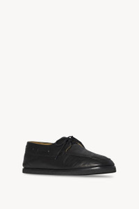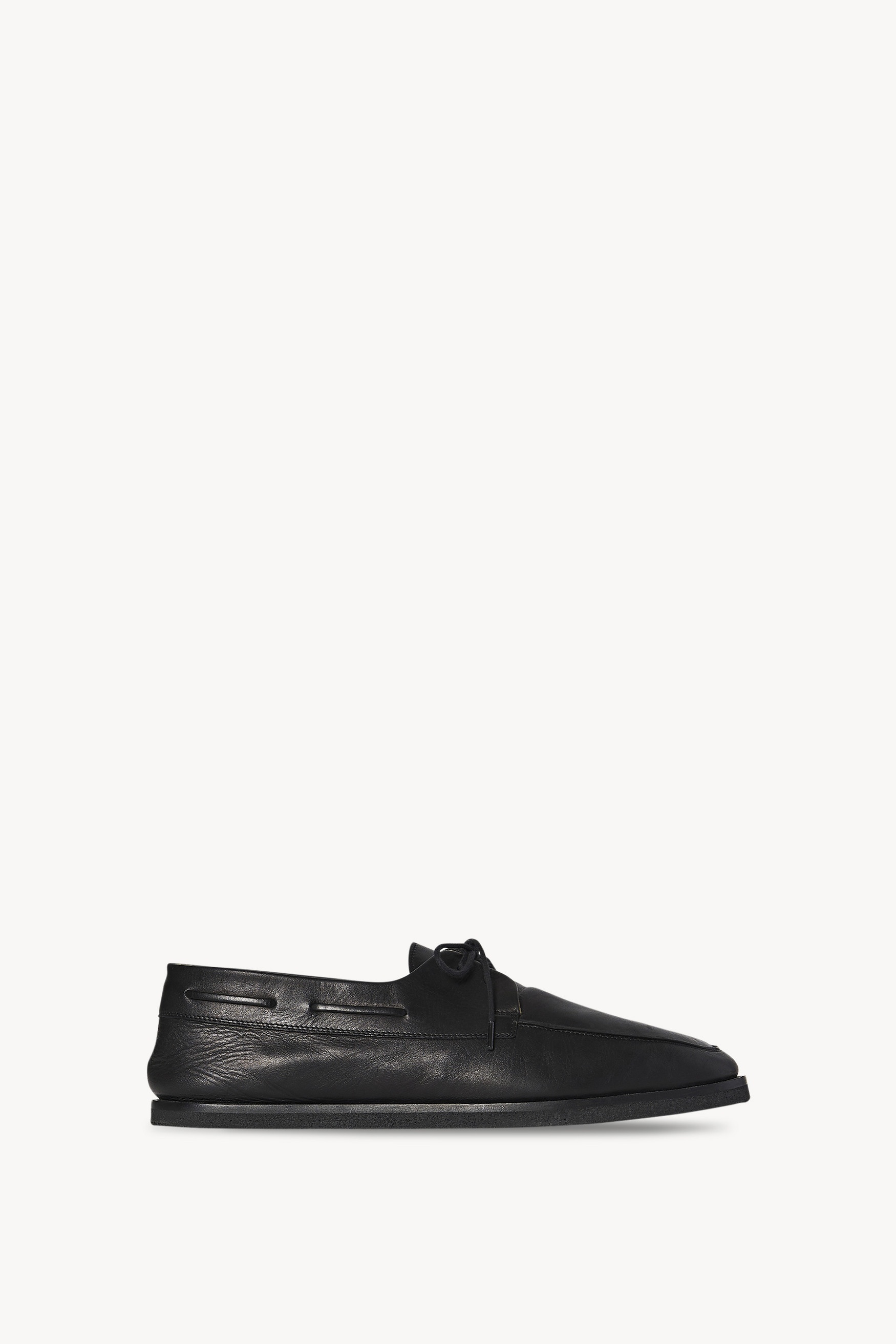 Classic interpretation of a sailor loafer in grained calfskin leather with soft suede lining and leather laces. More information - 100% Calfskin upper and lining, 100% Leather sole - Made in Italy - Style: F2016L65BLK