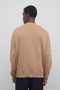 Relaxed cardigan sweater in fluffy alpaca silk cashmere with deep v-neckline, horn button closure, and ribbed placket, cuffs and hem. More information - 60% Wool, 40% Silk - Made in Italy - Style: 758Y823CML
