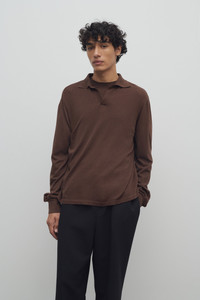 Long-sleeved polo top in textured natural silk with open placket, buttoned cuffs, and relaxed fit. More information - 99% Silk, 1% Polyamide - Made in Italy - Style: 911Y901CHO