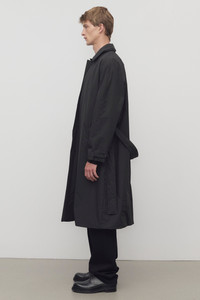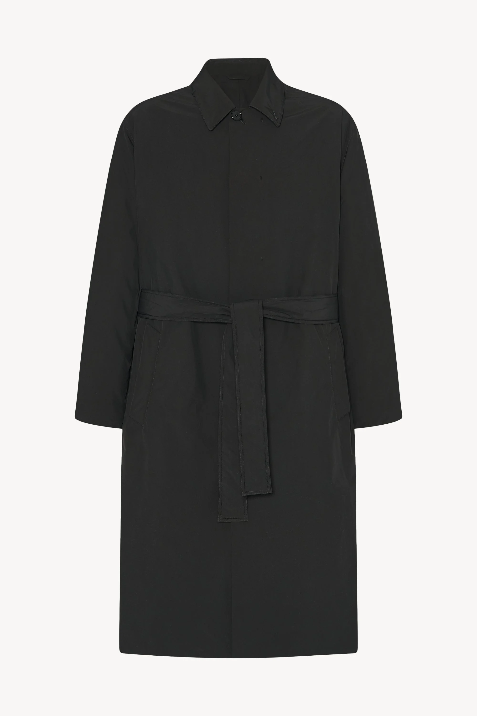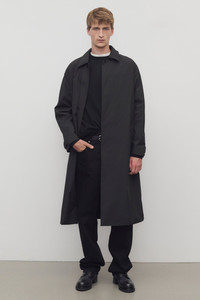 Single-breasted trench coat in water-repellant technical fabric with removable belt, slant welt pockets, and concealed front placket with button closure. More information - 100% Polyester - Made in Italy - Style: 1127W3579BLK