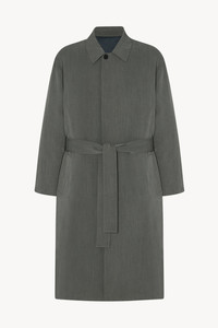 Single-breasted trench coat in double-faced silk and wool with removable belt, slant welt pockets, and concealed front placket with button closure. More information - 50% Silk, 50% Wool - Lined in 100% Cotton - Made in Italy - Style: 1127W4015GCT