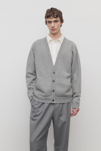 Oversized v-neck cardigan in ultrafine cashmere with front pouch pocket, front button closure, and ribbed cuffs and hem. More information - 100% Cashmere - Made in Italy - Style: 1010Y751GYM