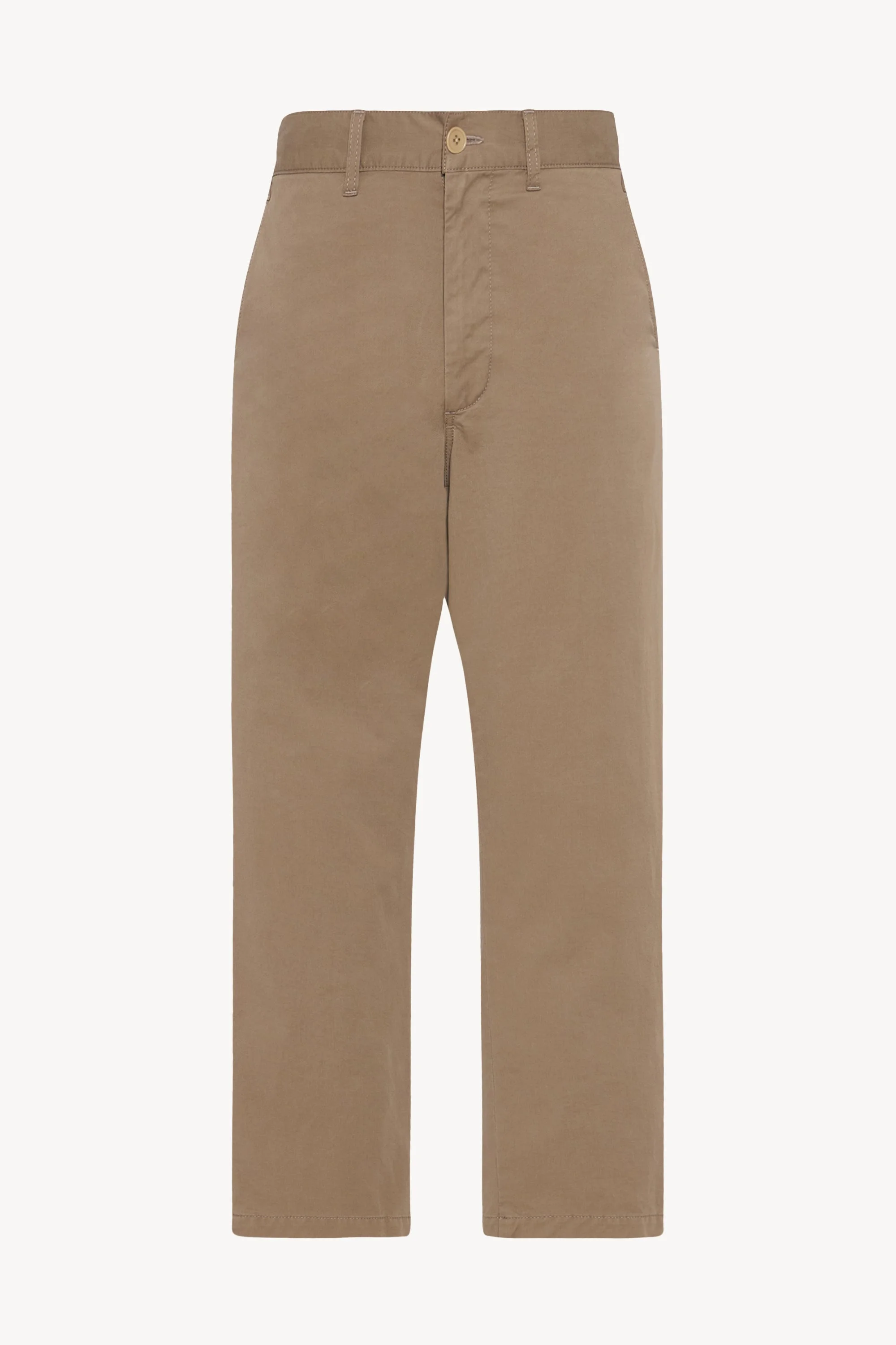 Relaxed mid-rise pant in soft cotton and cashmere gabardine with cropped straight leg, wide waistband, and side seam pockets. More information - 95% Cotton, 5% Cashmere - Lined in 100% Cotton - Made in Italy - Style: 991W3670TAU