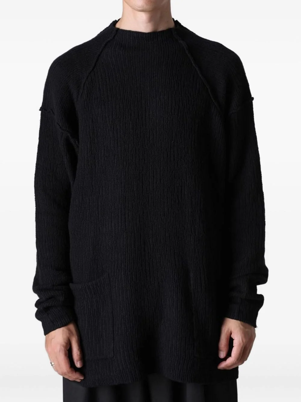 distressed sweater Highlights - Black - Ribbed texture - Crew neck - Long sleeves - Distressed detailing Imported Composition Fabric 100% Washing instructions Read Manufacturer Guidelines