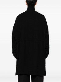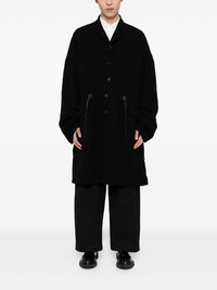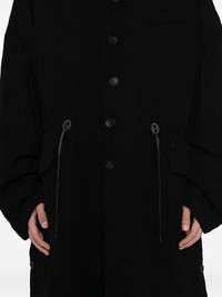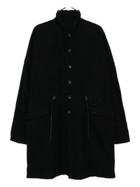 embroidered twil coat Highlights - Black - Front button fastening - Drawstring waist - Two front flap pockets Imported Composition Wool 100% SIZE & FIT Model measurements Height 6 ft 2 in(1.87 m) Bust/Chest 33.07 in(84 cm) Hips 35.43 in(90 cm) Waist 26.77 in(68 cm) FittingInformation Designed to be unstructured, offering a loose fit throughout The adjustable drawstring means that you can adjust this piece’s fit to suit your comfort and preference Made from a midweight non-stretch fabric Washing instructions Dry Clean Only