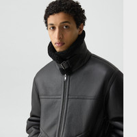 Please enter your email below to be notified when this item is in stock This warm jacket is crafted in luxurious leather-backed shearling. Cut in our standard fit, it’s detailed with a belted stand collar for the aviator-inspired look. Unzipped, the collar folds down into a classic spread shape. Features side welt pockets and a front closure. Style #: P0770418 Please enter your email below to be notified when this item is in stock Fit True to size, choose your normal size Standard fit, long sleeves Hip length Model is 6’2”, chest 38” and wearing a US size M Discover the best fit for you on our. Materials & Care Composition 100% lamb shearling Care Do not wash. Do not bleach. Do not tumble dry. Do not iron. Do not dry clean. Professional fur clean only. Imported