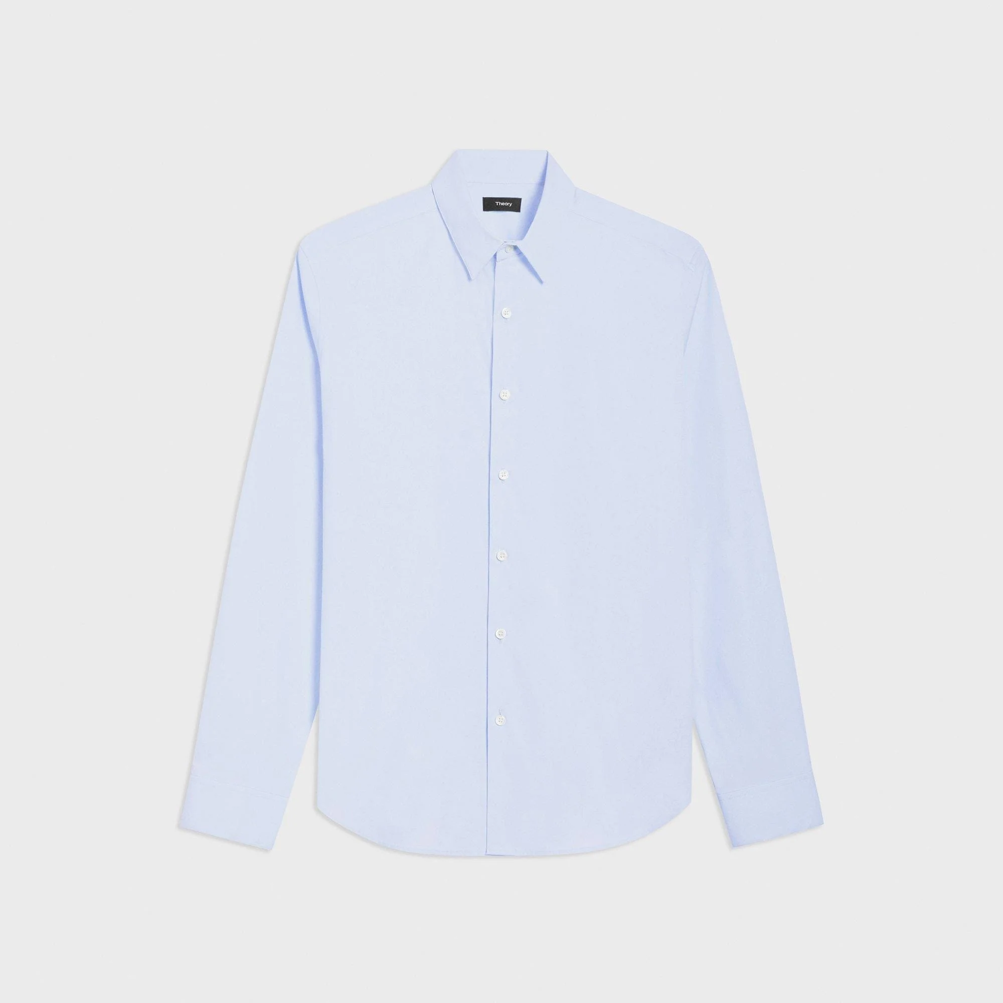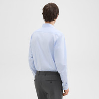 A tailored style with minimal detailing, our Sylvain shirt is designed with a structured point collar, two darts in the back for a refined fit, and an extended hem that easily tucks into your pants. It's cut from our stretch Good Cotton that looks crisp and keeps you comfortable year round. Theory for Good We are committed to making a positive impact on the people who wear our clothes, our industry, and our planet, beginning with our Good fabrics. Our Good Cotton is made with extra-long staple, American-grown SUPIMA® cotton, which is recognized as one of the softest and most durable cottons in the world. To ensure this cotton is verifiably traceable, we have partnered with Oritain™, which uses forensic science to validate our SUPIMA® cotton from the farm to the mill in Italy where it is woven into cloth. Learn more about our Good Cotton. Style #: A0674535 Fit True to size, choose your normal size Slim fit, long sleeves Hip length Model is 6’2”, chest 38" and wearing a US size M Materials & Care Composition 78% cotton 18% polyamide 4% elastane Care Machine wash warm, gentle cycle. Do not bleach. Do not tumble dry. Warm iron if needed. Dry clean with any solvent except trichloroethylene. Imported