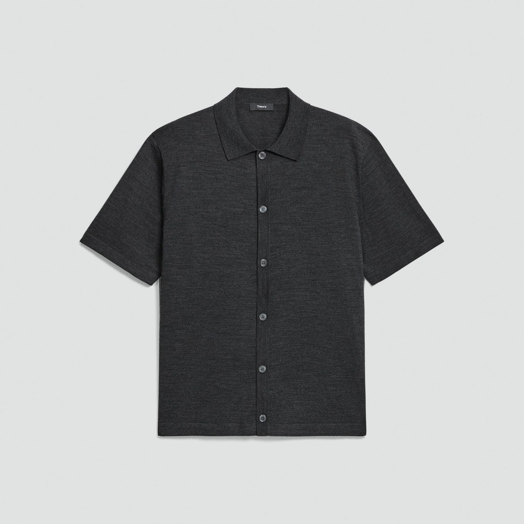 Please enter your email below to be notified when this item is in stock This short-sleeve sweater features a spread collar, slightly dropped shoulders, and buttons up the front. A lightweight yet luxurious upgrade to an essential style, it’s knit in a fine-gauge rib texture using merino wool spun in Italy. Style #: Q0281702 Please enter your email below to be notified when this item is in stock Materials & Care Composition 100% wool; exclusive of elastic Care Do not wash. Do not bleach. Do not tumble dry. Cool iron if needed. Dry clean with any solvent except trichloroethylene. Imported