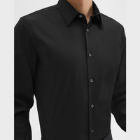 A tailored style with minimal detailing, our Sylvain shirt is designed with a structured point collar, two darts in the back for a refined fit, and an extended hem that easily tucks into your pants. It's cut from our stretch Good Cotton that looks crisp and keeps you comfortable year round. Theory for Good We are committed to making a positive impact on the people who wear our clothes, our industry, and our planet, beginning with our Good fabrics. Our Good Cotton is made with extra-long staple, American-grown SUPIMA® cotton, which is recognized as one of the softest and most durable cottons in the world. To ensure this cotton is verifiably traceable, we have partnered with Oritain™, which uses forensic science to validate our SUPIMA® cotton from the farm to the mill in Italy where it is woven into cloth. Learn more about our Good Cotton. Style #: A0674535 Fit True to size, choose your normal size Slim fit, long sleeves Hip length Model is 6’2”, chest 38" and wearing a US size M Materials & Care Composition 78% cotton 18% polyamide 4% elastane Care Machine wash warm, gentle cycle. Do not bleach. Do not tumble dry. Warm iron if needed. Dry clean with any solvent except trichloroethylene. Imported