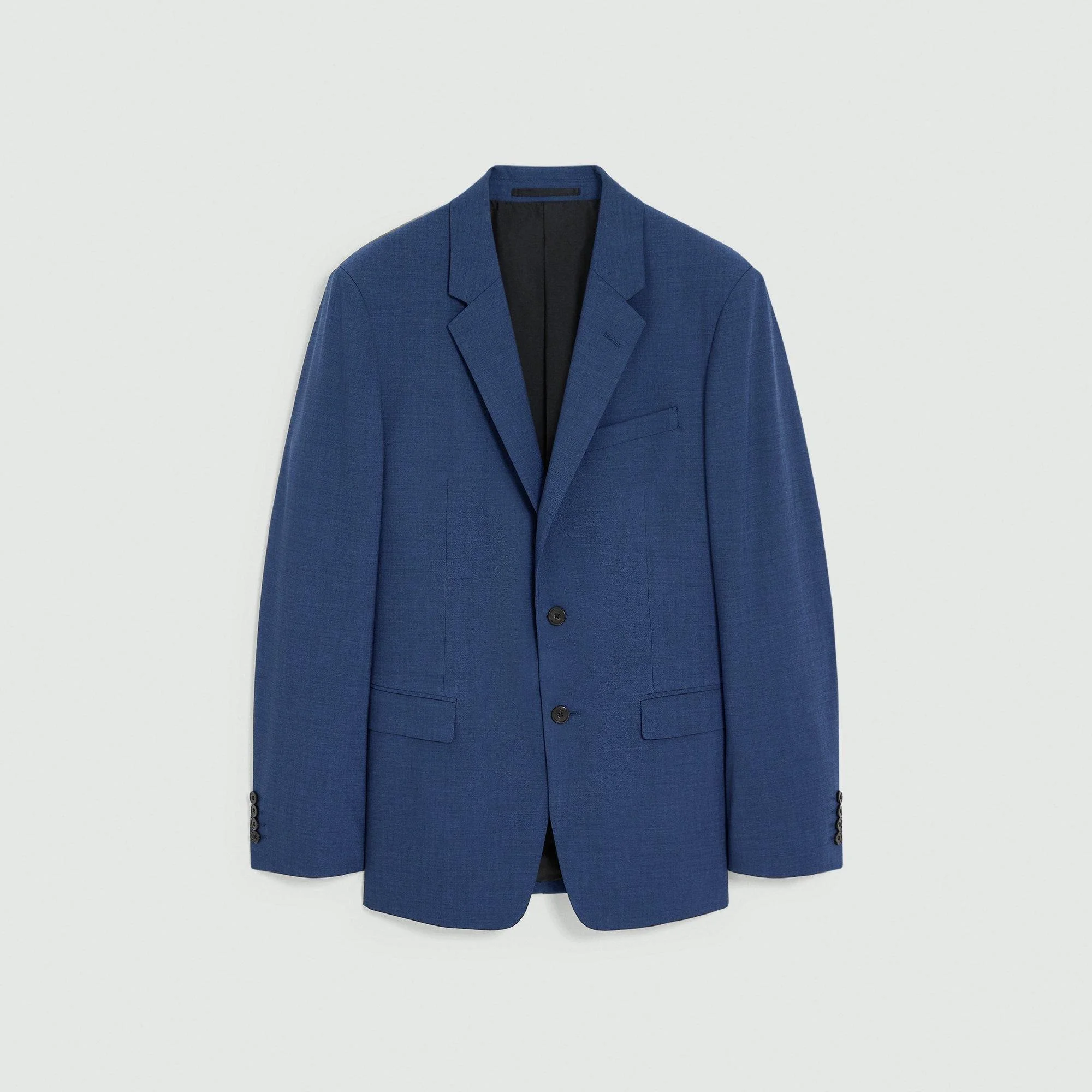 With inherent moisture control, this fabric is wrinkle resistant for all-day polish, our structured jacket features notch lapels, chest pocket, and flap pockets. Fully lined, detailed with two interior pockets, and finished buttoned cuffs, it's crafted with a fine, medium-weight Italian wool suiting fabric. Style #: I0171104 Fit True to size, choose your normal size Slim fit, long sleeves Hip length Model is 6’2”, chest 38” and wearing a US size 38R Materials & Care Composition 97% virgin wool 3% spandex Care Do not wash. Do not bleach. Do not tumble dry. Dry clean with any solvent except trichloroethylene. Iron cool. Imported
