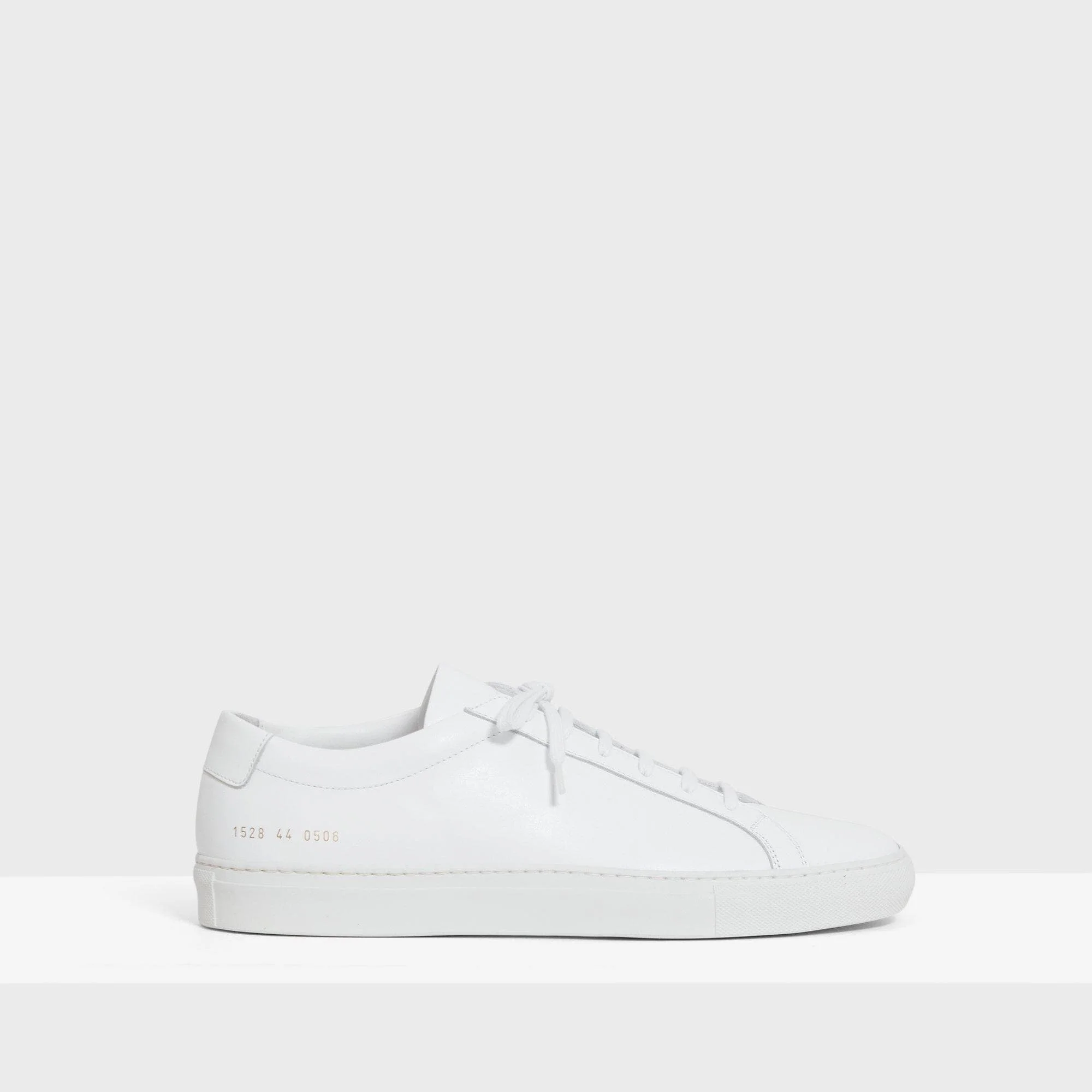 Common Projects’ Original Achilles sneakers are crafted from soft, white leather and stamped with their signature gold numbers. Perfect from the office to out, these minimalist low-top sneakers have a white rubber sole and leather lining. Style #: F061562X Fit Fits true to size If in between sizes, we recommend sizing up Materials & Care Composition upper: 100% leather; sole: 100% rubber Care Spot clean or professional leather clean only. Made in Italy.
