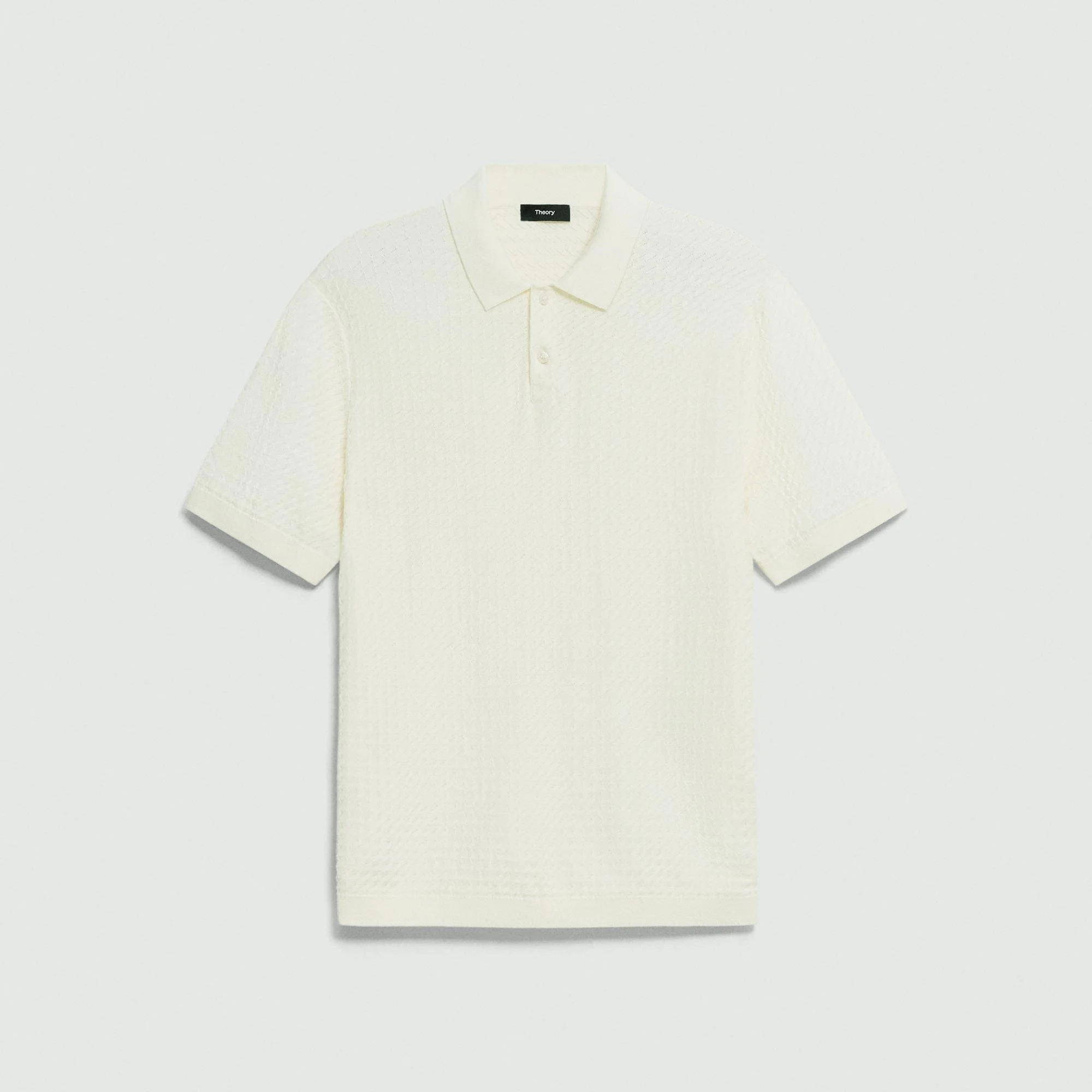 Please enter your email below to be notified when this item is in stock The Damian polo shirt is detailed with a classic pointed collar, rib-knit trim, and a partial button-front closure. It’s crafted from a soft cotton yarn for a tactile finish in a variegated rib stitch. Style #: P0384705 Please enter your email below to be notified when this item is in stock Fit True to size, choose your normal size Standard fit, short sleeves Hip length Model is 6’2”, chest 38” and wearing a US size M Materials & Care Composition 100% cotton Care Hand wash cold. Do not bleach or tumble dry. Cool iron if needed. Dry clean with any solvent except trichloroethylene. Imported.
