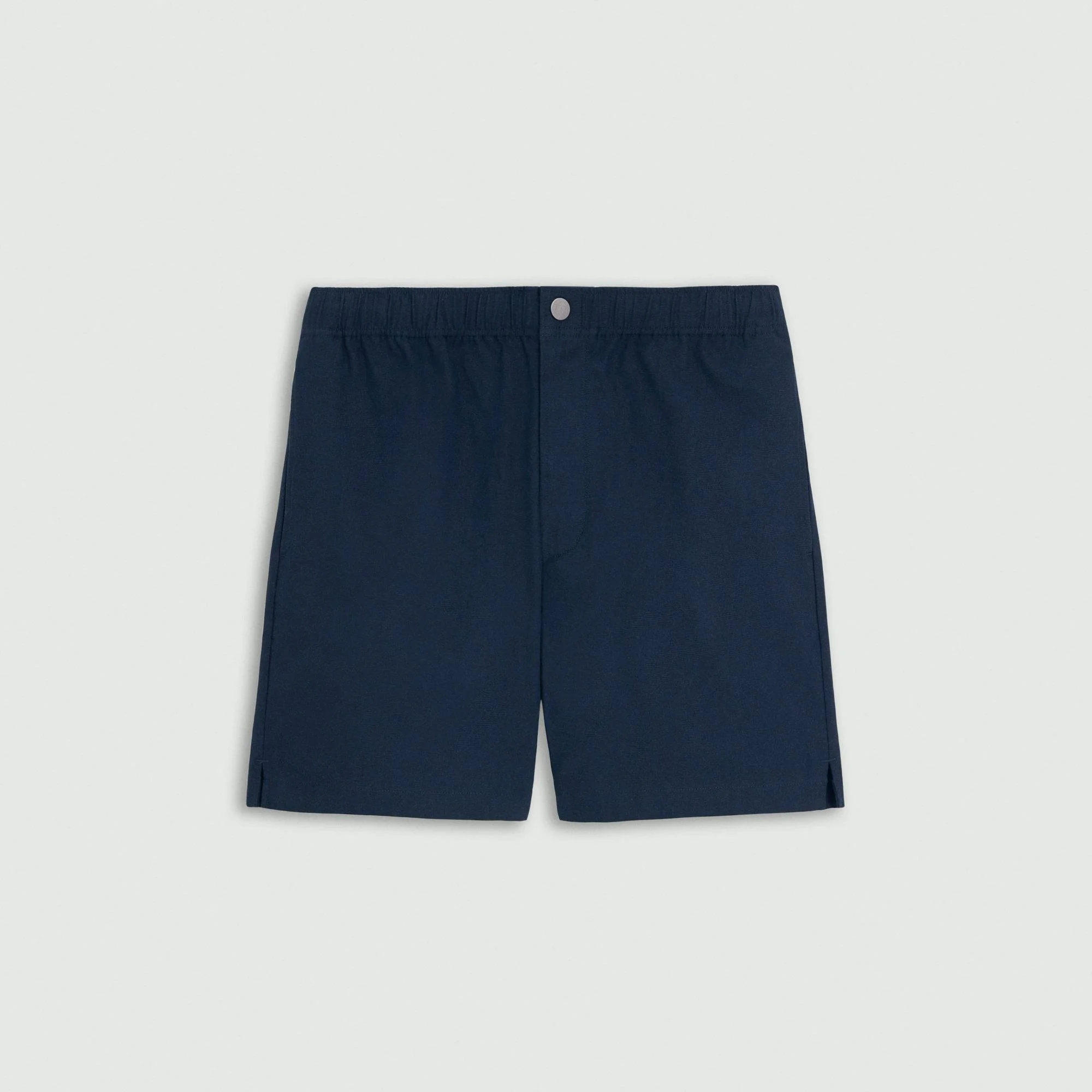 Detailed with an internal drawstring for ease, this short features a slim cut finished with side slip pockets and back welt pockets. It’s crafted with certified organic cotton in a canvas weave with a touch of stretch produced in Turkey. Style #: P0274201 Fit True to size, choose your normal size Mid rise, slim leg Above-the-knee length Model is 6’2”, waist 32” and wearing a US size 32 Materials & Care Composition 98% cotton 2% elastane Care Machine wash separately on a cold, gentle cycle. Do not bleach or tumble dry. Cool iron if needed. Dry clean with any solvent except trichloroethylene. Imported.
