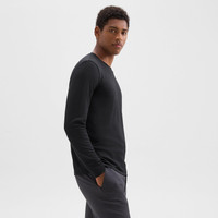 Cut from a sustainable modal and recycled polyester knit with enhanced elasticity, the Essential tee is a lightweight wardrobe staple that layers comfortably under sweaters and jackets alike. Style #: N0799522 Fit True to size, choose your normal size Slim fit, long sleeves Hip length Model is 6’ 2”, chest 38” and wearing a US size M Materials & Care Composition 72% modal 23% recycled polyester 5% spandex Care Machine wash cold, gentle cycle. Do not bleach. Do not tumble dry. Cool iron if needed. Dry clean with any solvent except trichloroethylene. Imported