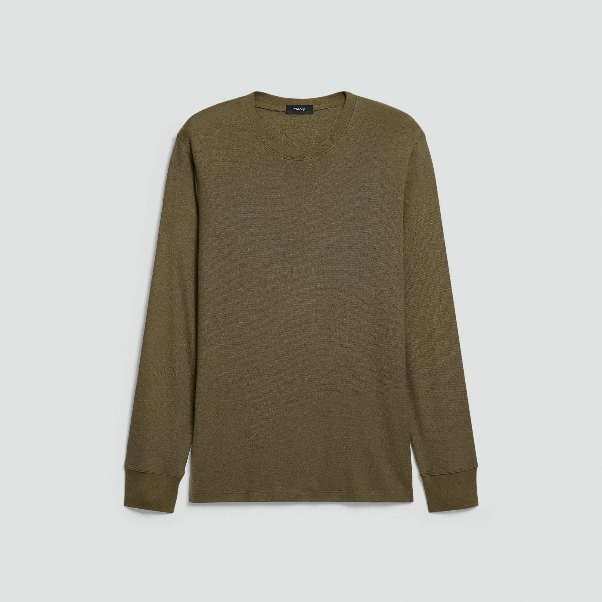 Please enter your email below to be notified when this item is in stock Cut from a sustainable modal and recycled polyester knit with enhanced elasticity, the Essential tee is a lightweight wardrobe staple that layers comfortably under sweaters and jackets alike. Style #: N0799522 Please enter your email below to be notified when this item is in stock Fit True to size, choose your normal size Slim fit, long sleeves Regular length Model is 6’2”, chest 38” and wearing a US size M Discover the best fit for you on our. Materials & Care Composition 72% modal 23% recycled polyester 5% spandex Care Machine wash cold, gentle cycle. Do not bleach. Do not tumble dry. Cool iron if needed. Dry clean with any solvent except trichloroethylene. Imported