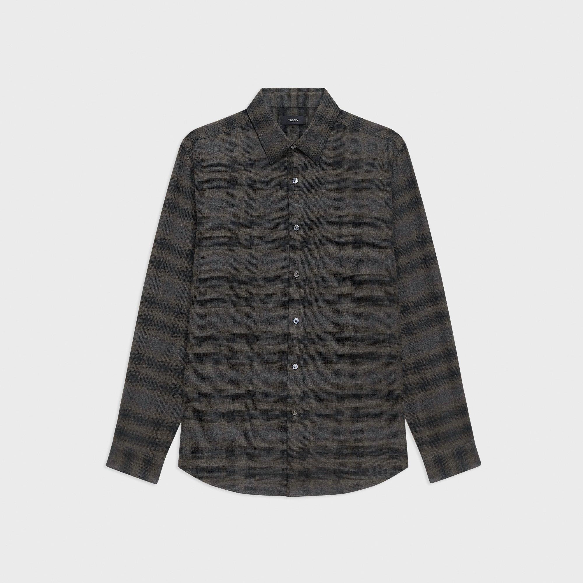 Our Irving shirt is cut for a standard fit and detailed with a point collar, button-front closure, and adjustable cuffs. A style that feels both casual and modern, this version is crafted from a soft cotton flannel produced by a family owned Italian mill with a custom-designed shadow plaid weave. Style #: O0874504 Fit True to size, choose your normal size Standard fit, long sleeves Hip length Model is 6’2”, chest 38” and wearing a US size M Materials & Care Composition 100% cotton Care Machine wash cold, gentle cycle. Do not bleach. Tumble dry low. Cool iron if needed. Dry clean with any solvent except trichloroethylene. Imported