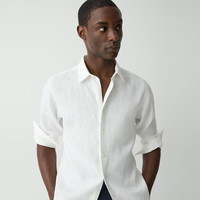 Our Irving shirt is cut for a standard fit and detailed with a point collar, button-front closure, and adjustable cuffs. A style that feels both casual and modern, this version is crafted from breathable linen made with EU-sourced flax, that has a relaxed, easy-to-wear feel. Style #: N0373501 Fit True to size, choose your normal size Standard fit, long sleeves Hip length Model is 6’2”, chest 38” and wearing a US size M Materials & Care Composition 100% linen Care Machine wash cold, gentle cycle, with similar colors. Do not bleach. Tumble dry low. Cool iron if needed. Dry clean with any solvent except trichloroethylene. Imported