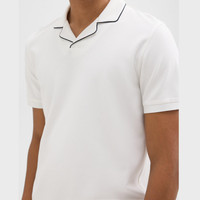 An elevated short-sleeve style with a rib knit Johnny collar, this polo has a slim fit and short sleeves. Sourced from responsibly managed forests, our viscose-blend jersey is a breathable, machine-washable, and made to move. Style #: O0596505 Fit True to size, choose your normal size Slim fit, short sleeves Hip length Model is 6’2”, chest 36” and wearing a US size M Materials & Care Composition 64% viscose 30% polyamide 6% elastane Care Machine wash warm, gentle cycle. Do not bleach. Do not tumble dry. Warm iron if needed. Dry clean with any solvent except trichloroethylene. Imported