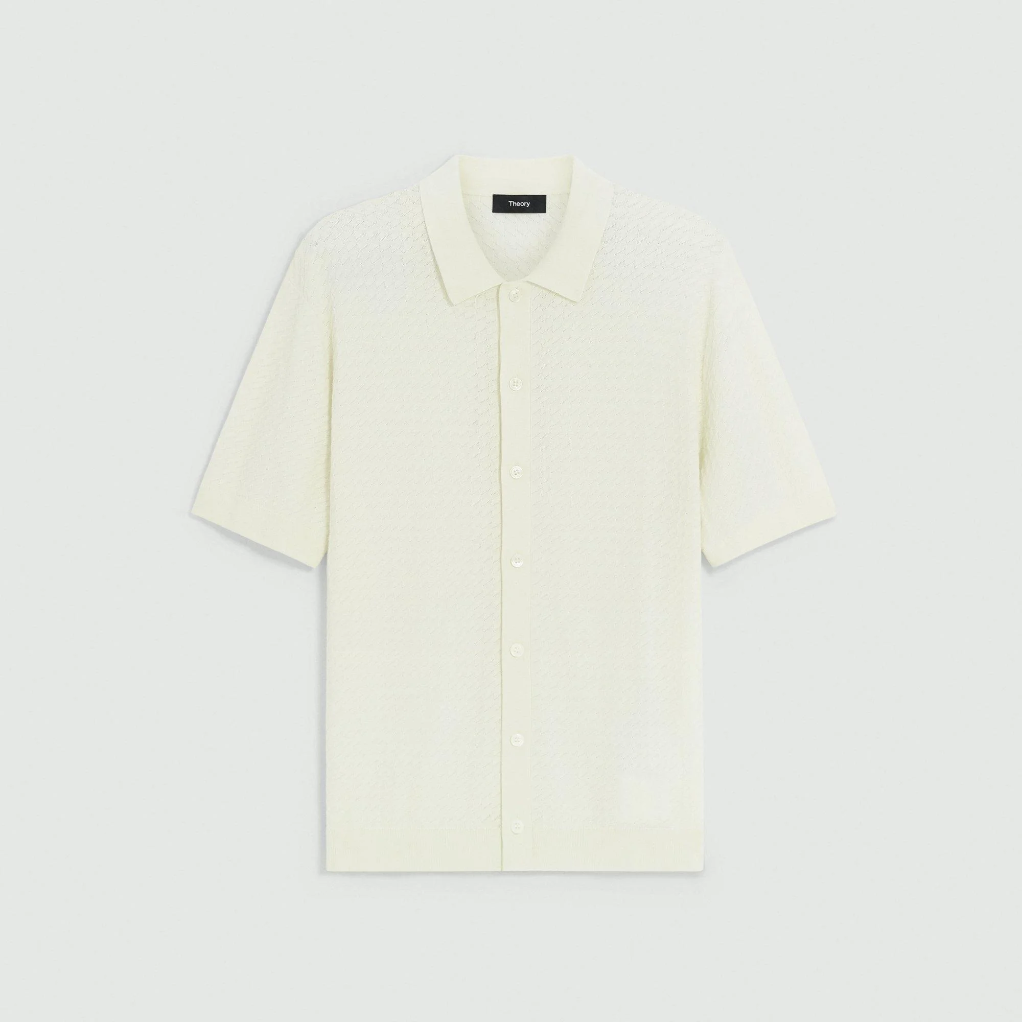 Please enter your email below to be notified when this item is in stock Finished with a quintessential pointed collar and button-front closure, this short-sleeve sweater is the perfect hybrid of a shirt and cardigan. It’s crafted from a soft cotton yarn for a tactile finish in a variegated rib stitch. Style #: P0384702 Please enter your email below to be notified when this item is in stock Fit True to size, choose your normal size Standard fit, short sleeves Hip length Model is 6’2”, chest 38” and wearing a US size M Materials & Care Composition 100% cotton Care Hand wash cold. Do not bleach or tumble dry. Cool iron if needed. Dry clean with any solvent except trichloroethylene. Imported.