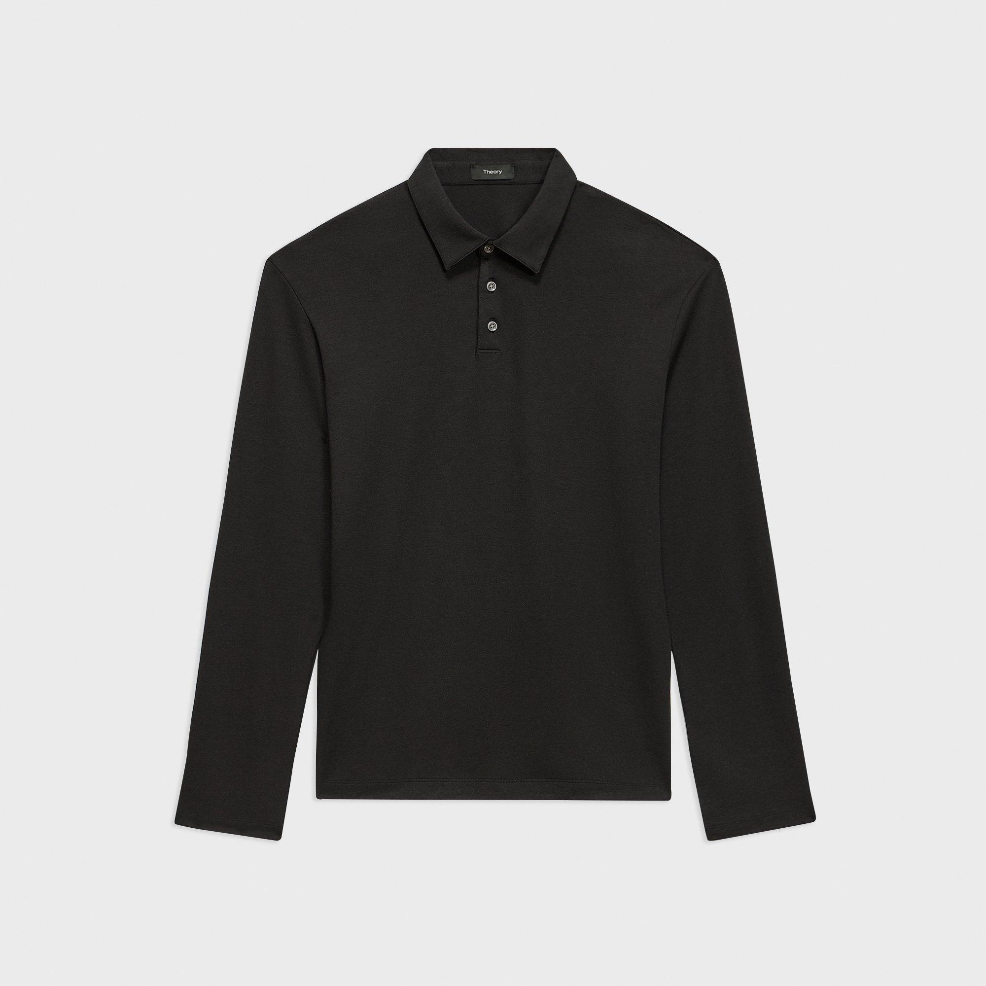Our classic approach to the quintessential polo is cut for a standard straight fit with long sleeves. Finished with a polo collar and placket, it’s cut in a substantial cotton jersey with a subtle sheen and natural stretch. Style #: O0894501 Fit True to size, choose your normal size Standard fit, long sleeves Hip length Model is 6’2”, chest 38” and wearing a US size M Materials & Care Composition 100% supima?cotton Care Machine wash cold, gentle cycle, with similar colors and wash inside out. Do not bleach. Tumble dry low. Cool iron if needed. Do not dry clean. Imported