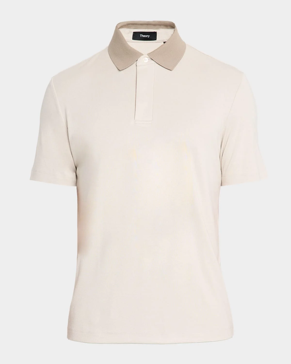 - Theory "Anemone Kayser" polo shirt made of signature modal jersey, which is softer, smoother, and stronger than cotton. - Contrast spread collar; covered quarter placket. - Short sleeves. - Vented hem. - Pullover style. - Modal/polyester. - Dry clean. - Imported. - Fashioned for change: sustainable materials. Find out more - here