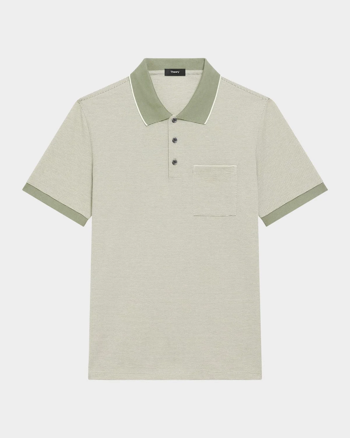 - Theory polo shirt in birdseye-woven cotton pique for added visual interest - Contrasting collar and cuffs - Functional chest patch pocket - Spread collar with tipping - Short sleeves - Ribbed cuffs - Pullover style - Classic fit - Cotton - Machine wash cold, tumble dry, wash inside out - Made in Peru