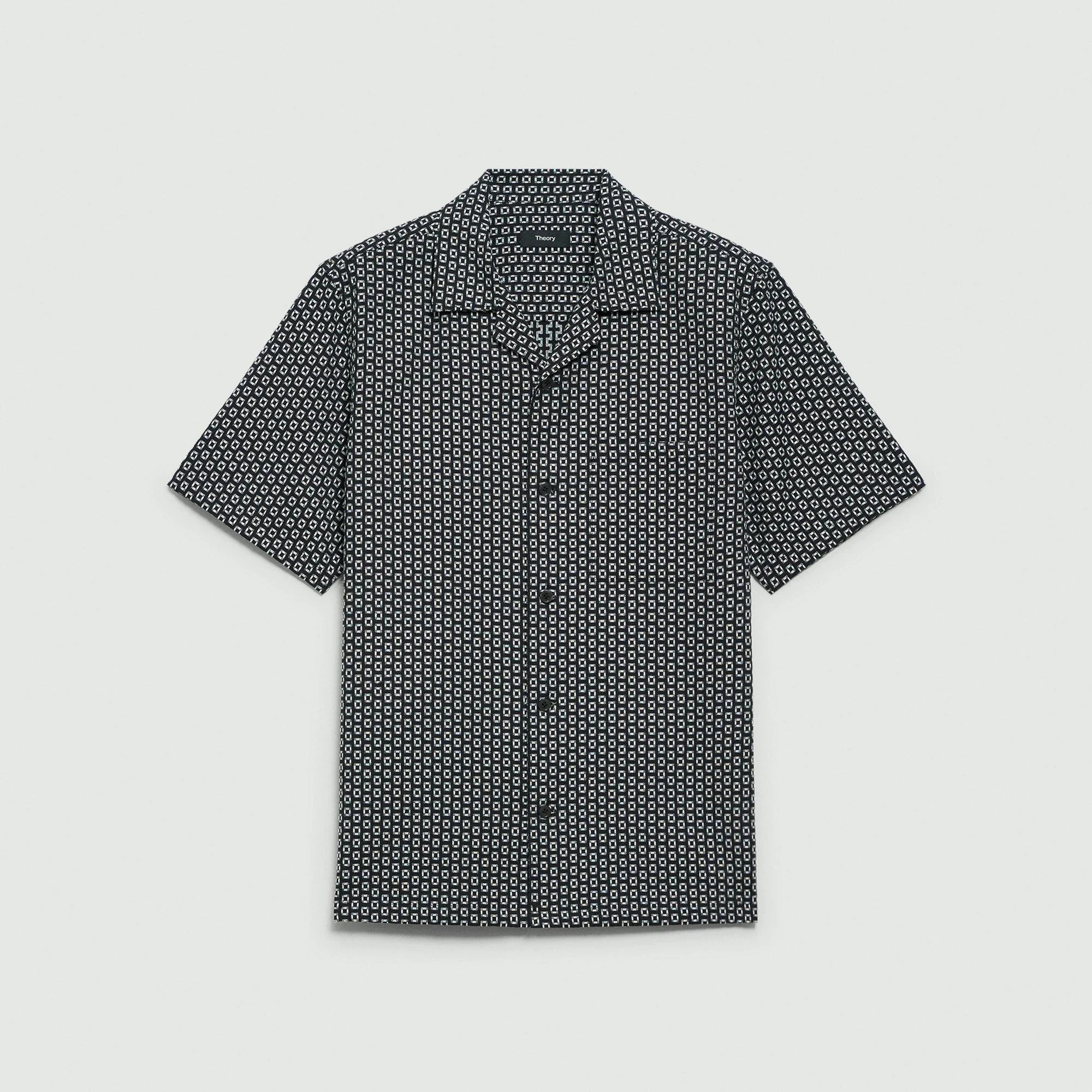 Please enter your email below to be notified when this item is in stock This short-sleeve shirt is a standard button-up accented with a camp collar. Cut from a textural dobby cotton woven in Portugal, this style brings an easy polish to warm-weather dressing. Style #: P0574504 Please enter your email below to be notified when this item is in stock Fit True to size, choose your normal size Standard fit, short sleeves Regular length Model is 6’2”, chest 38” and wearing a US size M Discover the best fit for you on our. Materials & Care Composition 100% cotton Care Machine wash cold, gentle cycle. Do not bleach. Tumble dry low. Cool iron if needed on reverse side. Dry clean with any solvent except trichloroethylene. Imported