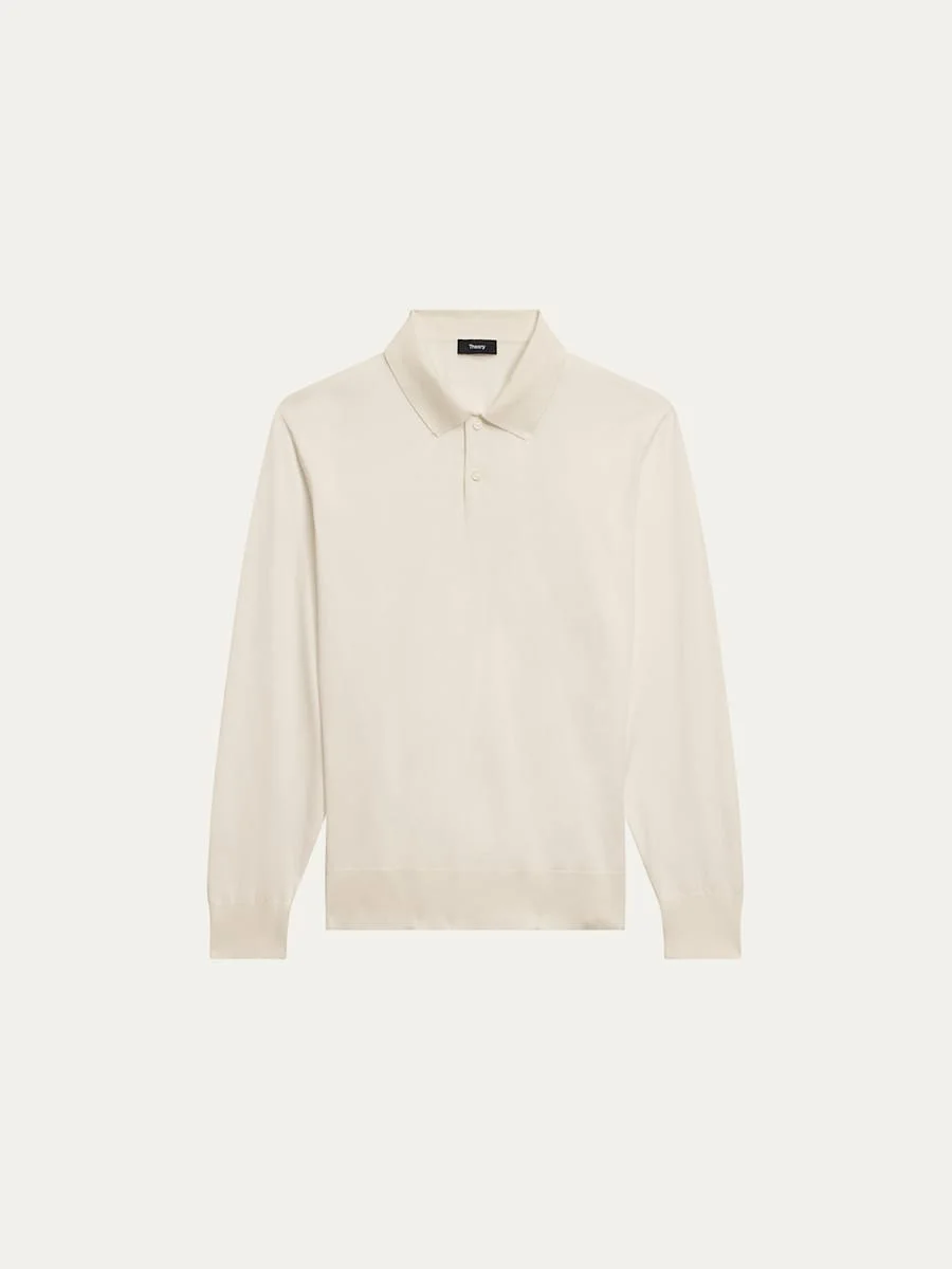 Theory "Goris" polo shirt crafted from a fineknit bilen Point collar; button placket Long sleeves Classic fit Viscose/PBT Dry clean, machine wash cold Imported