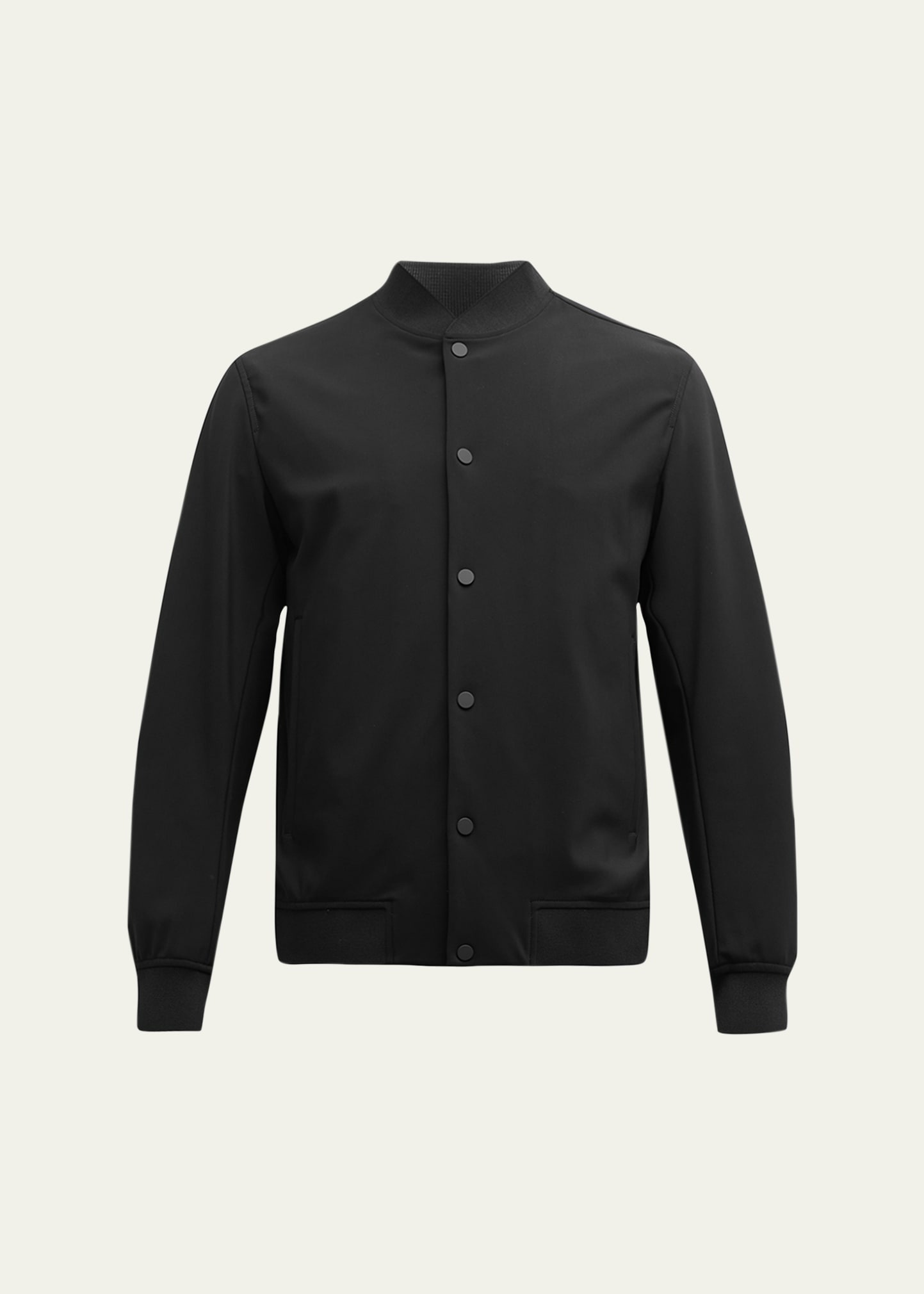 Theory "Murphy" jacket cut from Precision Ponte—a new wrinkle and abrasion-resistant knit that’s durable and easy-care Baseball collar; snap front closure Side welt pockets Long sleeves Banded cuffs and hem Polyamide/elastane Lining: Polyester Dry clean Imported Online Inquiries: BGS21_NELFG| Store Inquiries: #4200320