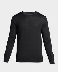 - Theory "Regal" sweater in solid knit with finely ribbed finishes. - Crew neckline. - Long sleeves. - Hem hits at hips. - Pullover style. - Wool. - Imported. - Fashioned for change: sustainable materials. Find out more - here