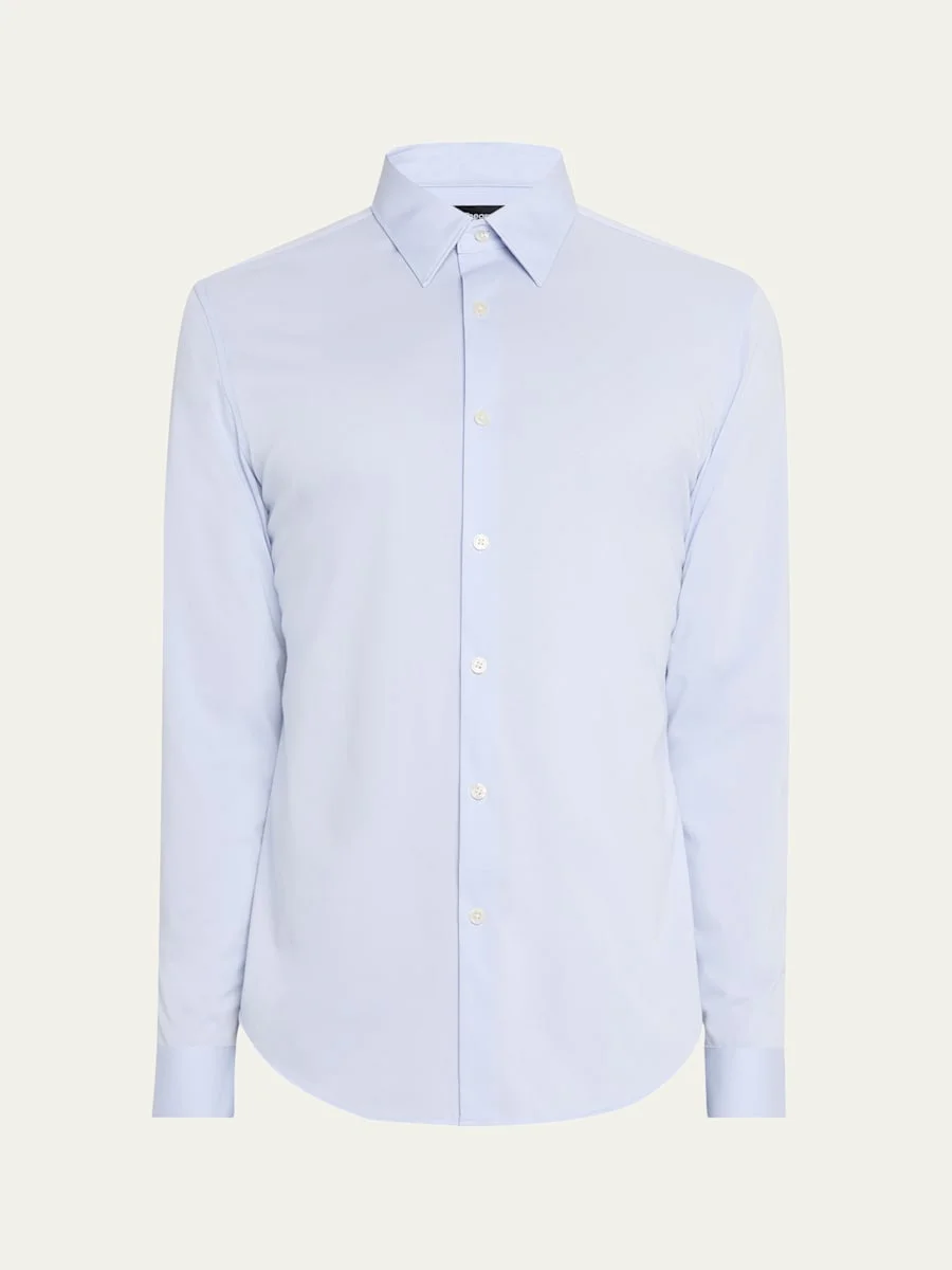 Theory "Sylvain" sport shirt in ultra-compact knit with inherent stretch Structured point collar Button front Slim fit Long sleeves Wrinkle resistant Cotton/polyester Imported Size Note: Item runs small, consider ordering a size up. Online Inquiries: BGS21_N6F7X| Store Inquiries: #3101575
