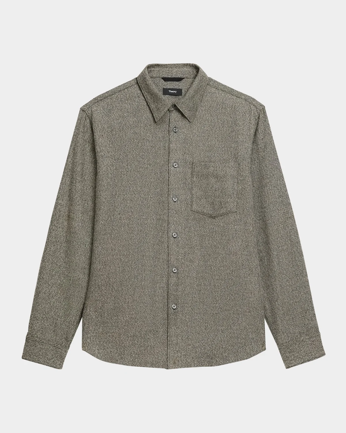 The "Weekend" shirt by Theory is woven using soft cotton for a warm flannel finish with a chest patch pocket for a classic, convenient touch. Point collar Button placket Chest pocket Long sleeves Round barrel cuffs Pleated back yoke Curved hem Modern fit Cotton Dry clean Imported