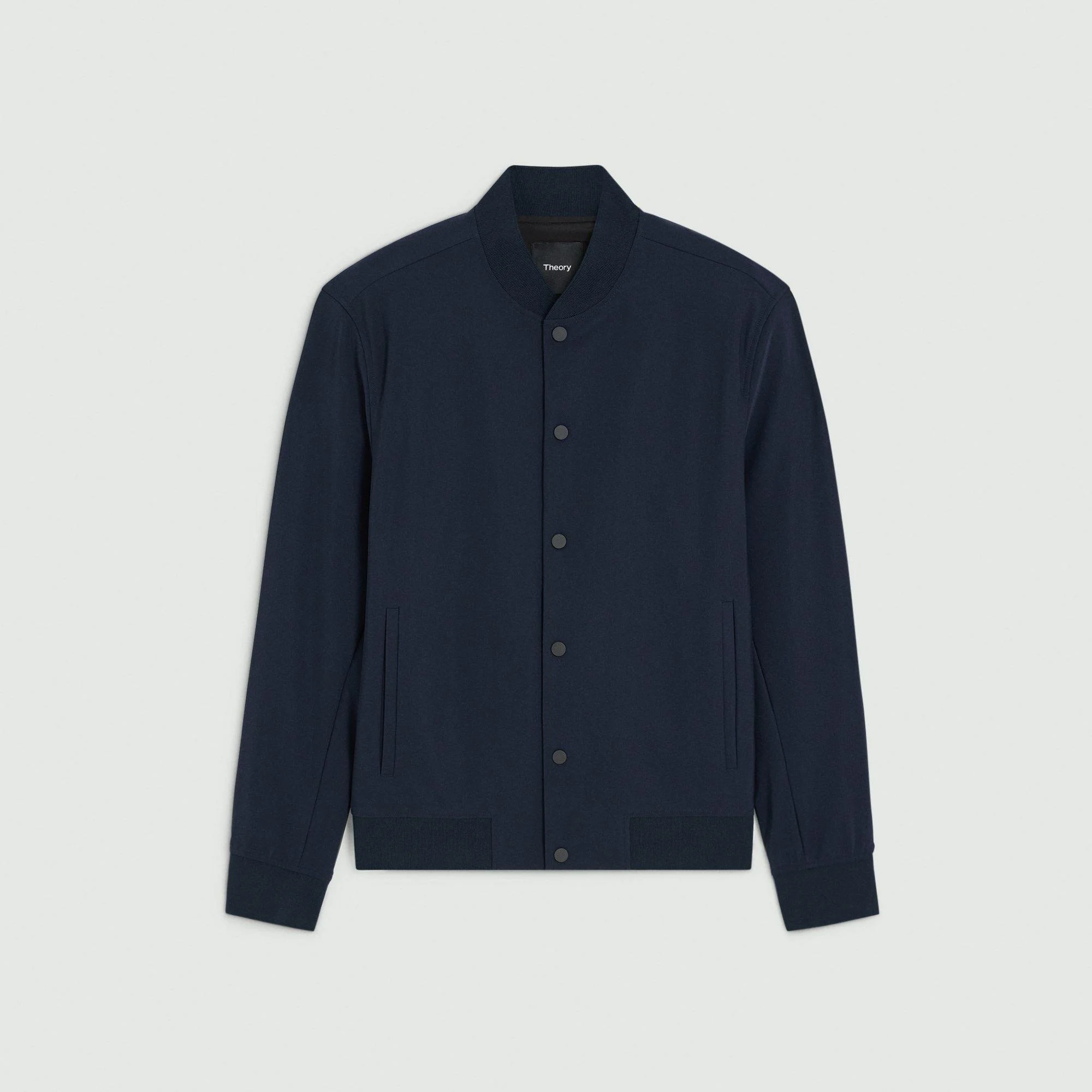 Our take on the bomber jacket, this snap-button version is accented with a classic collar, ribbed trim and side pockets. It’s crafted with our Precision Ponte—a wrinkle and abrasion-resistant knit that’s quick drying and UV protective. Its honeycomb structure allows ample airflow for added comfort. You may also like The Murphy Bomber Jacket in Printed Precision Ponte. Style #: L0697406 Fit True to size, choose your normal size Standard fit, long sleeves Below hip length Model is 6’2”, chest 38” and wearing a US size M Materials & Care Composition shell: 73% polyamide 27% elastane; back: 73% polyamide 27% elastane Care Do not wash. Do not bleach. Do not tumble dry. Cool iron if needed. Dry clean inside out with any solvent except trichloroethylene. Imported