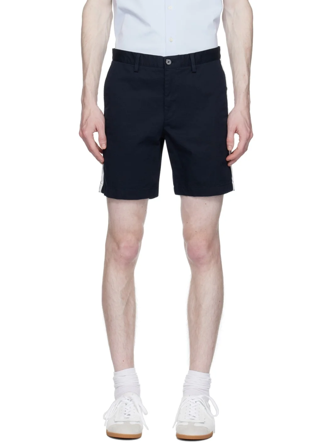 Stretch cotton twill shorts. · Belt loops · Four-pocket styling · Zip-fly · Striped webbing trim at outseams Supplier color: Baltic Body: 96% cotton, 4% elastane. Lining: 100% cotton. Made in Turkey 232216M193000