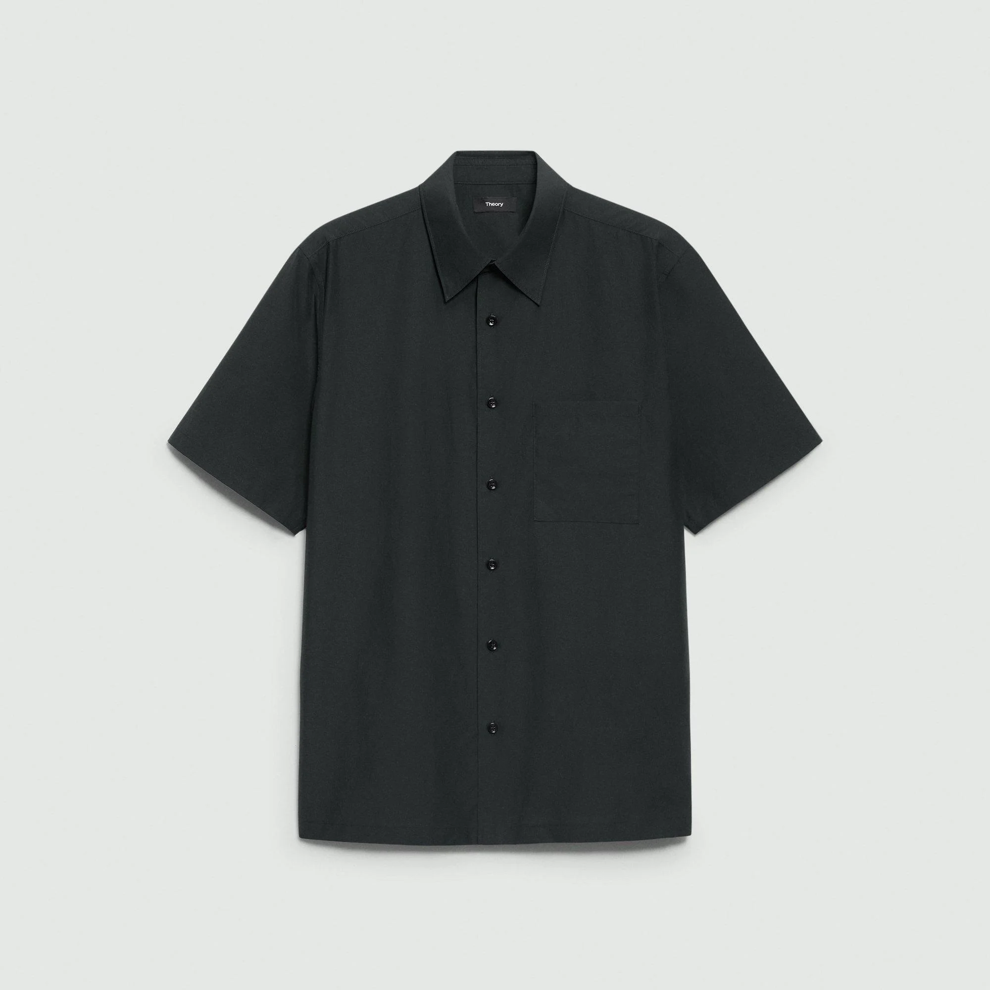 Please enter your email below to be notified when this item is in stock This short-sleeve shirt is a relaxed button-up with a pointed collar and chest patch pocket. A warm weather essential that travels well, this style is crafted using a blend of cotton and nylon which gives a slight sheen and modern feel, while the tumbled finish gives a casual yet still refined look. Style #: P0574506 Please enter your email below to be notified when this item is in stock Fit True to size, choose your normal size Standard fit, short sleeves Hip length Model is 6’2”, chest 38” and wearing a US size M Materials & Care Composition 68% cotton 32% recycled nylon Care Machine wash cold, gentle cycle. Do not bleach. Hang to dry in shade, do not tumble dry. Cool iron if needed, light steam if needed. Dry clean with any solvent except trichloroethylene. Imported