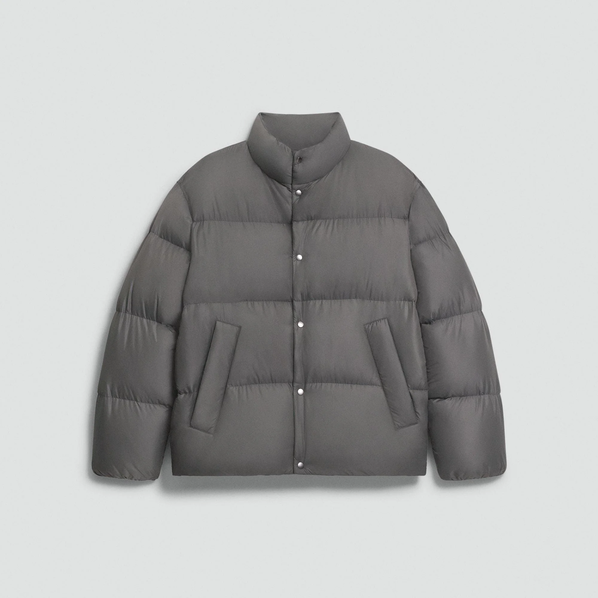 Please enter your email below to be notified when this item is in stock This lightweight puffer jacket is detailed with a stand collar, welt pockets, and slightly dropped shoulders. Detailed with a zip and snap front closures, this style is cut in our standard fit. Designed with form and function in mind, the garment features superior warmth without weight, softness, and comfort. It is constructed using fabric derived from certified recycled nylon, 900-grade down-filled, and certified by the Responsible Down Standard. Style #: P1077405 Please enter your email below to be notified when this item is in stock Fit True to size, choose your normal size Materials & Care Composition 100% recycled nylon
