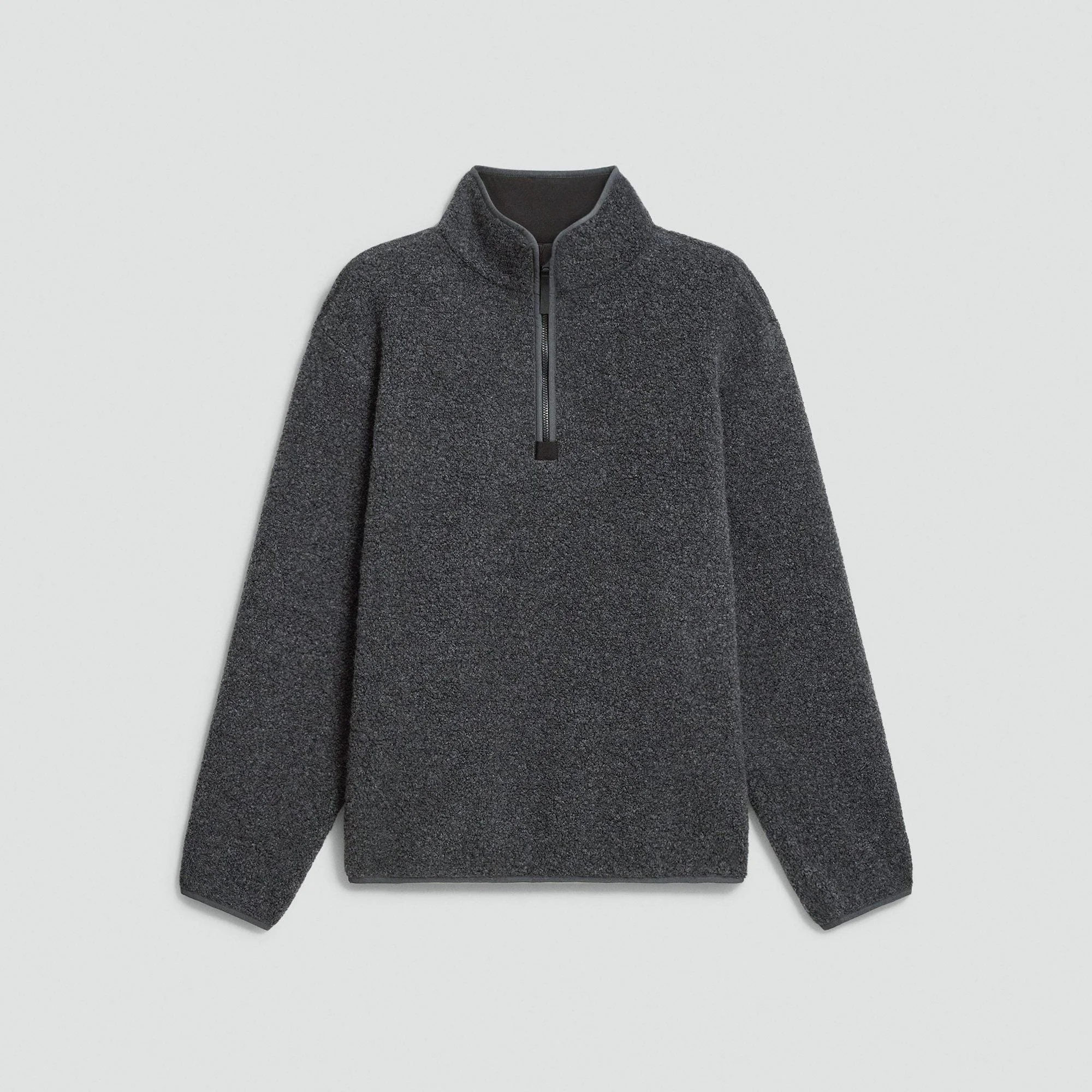 Please enter your email below to be notified when this item is in stock This relaxed sweatshirt features a stand collar, dropped shoulders, and a quarter-zip closure. It’s made of a luxurious fleece crafted in Italy by a leading mill in knitwear fabric innovation. The fabric quality uses certified recycled wool made from waste. The novel texture works to offer style, warmth, and comfort. Style #: P1191502 Please enter your email below to be notified when this item is in stock Fit True to size, choose your normal size Materials & Care Composition 63% recycled wool 24% nylon 13% polyester