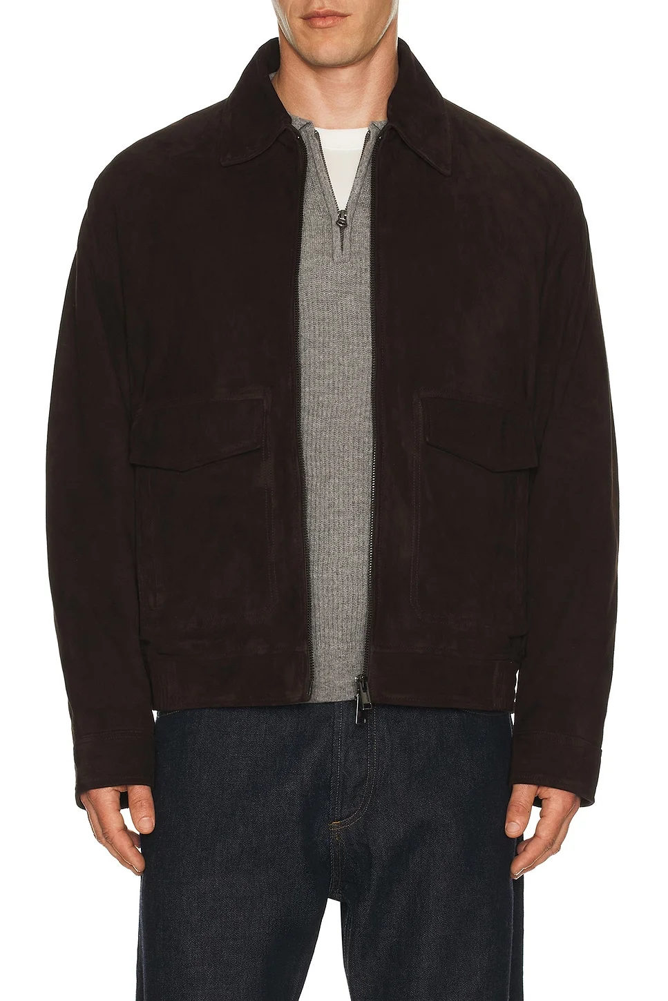 - Self 1: 100% lamb leather Lining: 100% cupro - Professional leather clean only - Two-way front zip closure - Front pockets - Snap button cuffs - Midweight suede fabric - Revolve Style No. THEO-MO109 - Manufacturer Style No. P1070402