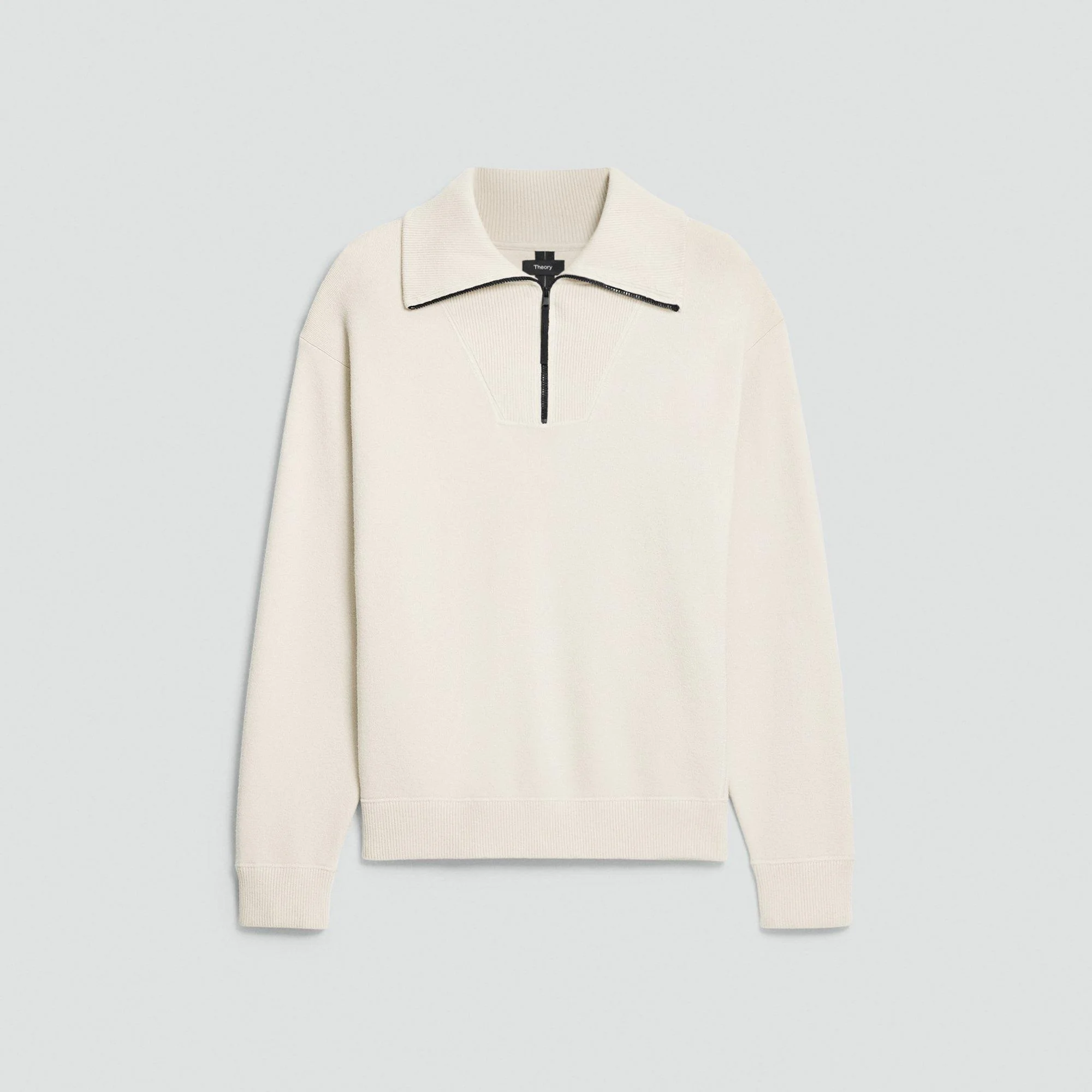 Please enter your email below to be notified when this item is in stock Our soft, smartest knit. This quarter-zip sweatshirt features a stand collar, dropped shoulders, and ribbed trim. The fabric is an evolution of our bestselling Light Bilen—it offers a warmer touch with the same lightweight comfort. It’s made with viscose from wood pulp sourced from certified responsibly managed forests and wool sourced from certified responsibly managed farms. Ideal for transitional weather, this versatile style is easy to dress up or down for any setting. Style #: P0786722 Please enter your email below to be notified when this item is in stock Fit True to size, choose your normal size Relaxed fit, long sleeves Regular length Model is 6’2”, chest 38” and wearing a US size M Discover the best fit for you on our. Materials & Care Composition 43% viscose 42% nylon 15% wool; exclusive of elastic Care Do not wash. Do not bleach. Do not tumble dry. Cool iron if needed. Dry clean with any solvent except trichloroethylene. Imported