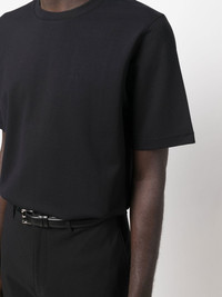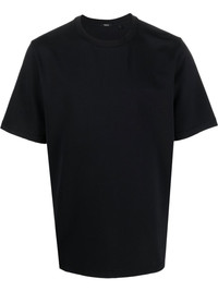 round-neck short-sleeve T-shirt black stretch-design round neck short sleeves straight hem Imported Composition Viscose 64%, Polyamide 30%, Elastane 6% SIZE & FIT Model measurements Height 6 ft 2 in(1.87 m) Bust/Chest 36.41 in(92.5 cm) Hips 37 in(94 cm) Waist 29.52 in(75 cm) Measurement CHEST 40.94 in(104 cm) SLEEVE LENGTH 18.11 in(46 cm) LENGTH 27.55 in(70 cm) Shoulder Width 17.32 in(44 cm) FittingInformation This piece fits true to size. We recommend you get your regular size Cut for a relaxed fit Made with a mid-weight non-stretch fabric Washing instructions Machine Wash