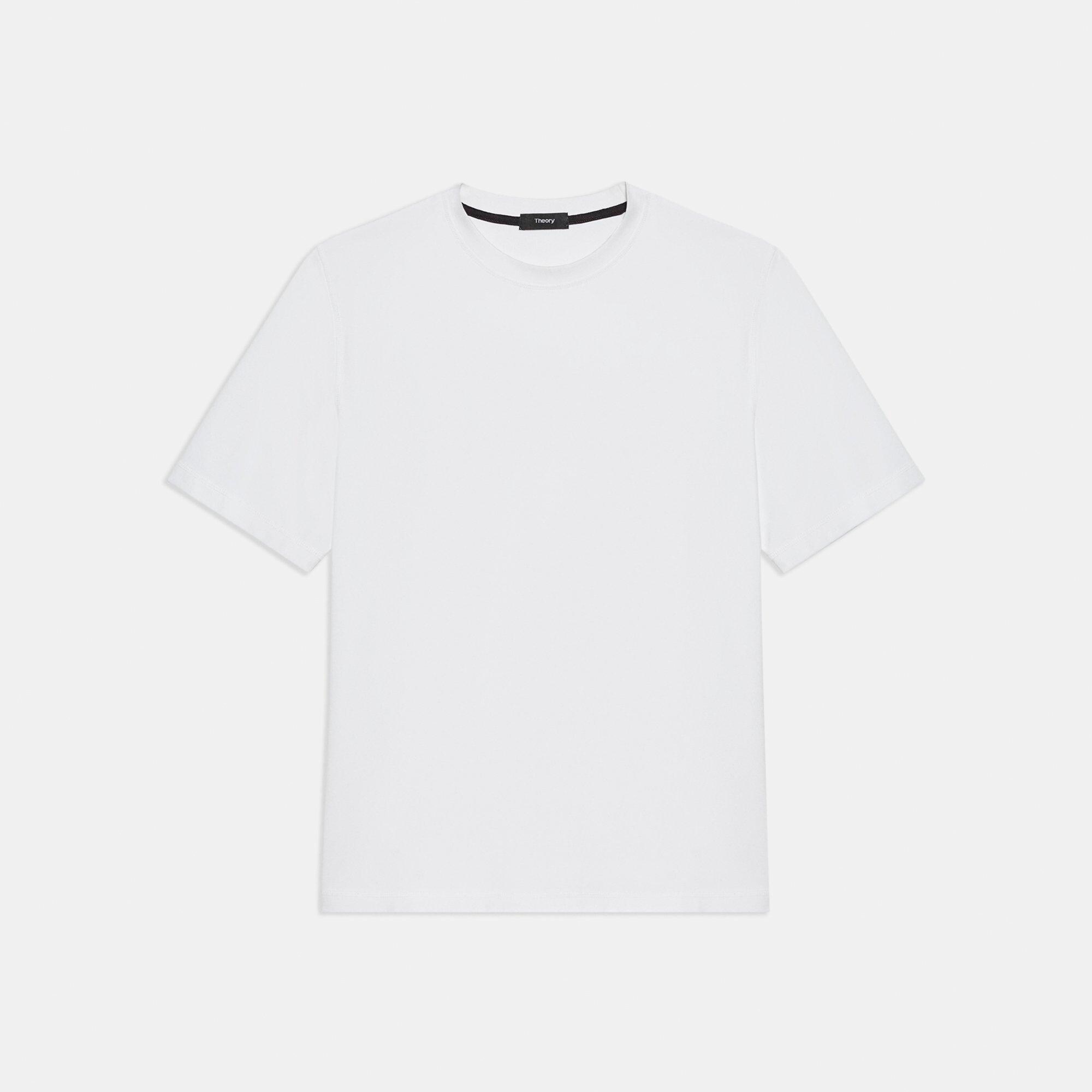 The Ryder crewneck tee is an elevated short-sleeve style that pairs as easily with tailored essentials as it does with your favorite denim. Sourced from responsibly managed forests, our viscose-blend jersey is a breathable, machine-washable knit that’s made to move. You may also like The Ryder Long-Sleeve Tee in Relay Jersey. Style #: M0196528 Fit True to size, choose your normal size Standard fit, short sleeves Hip length Model is 6’2”, chest 38” and wearing a US size M Materials & Care Composition 64% viscose 30% polyamide 6% elastane Care Machine wash warm, gentle cycle. Do not bleach. Do not tumble dry. Warm iron if needed. Dry clean with any solvent except trichloroethylene. Imported