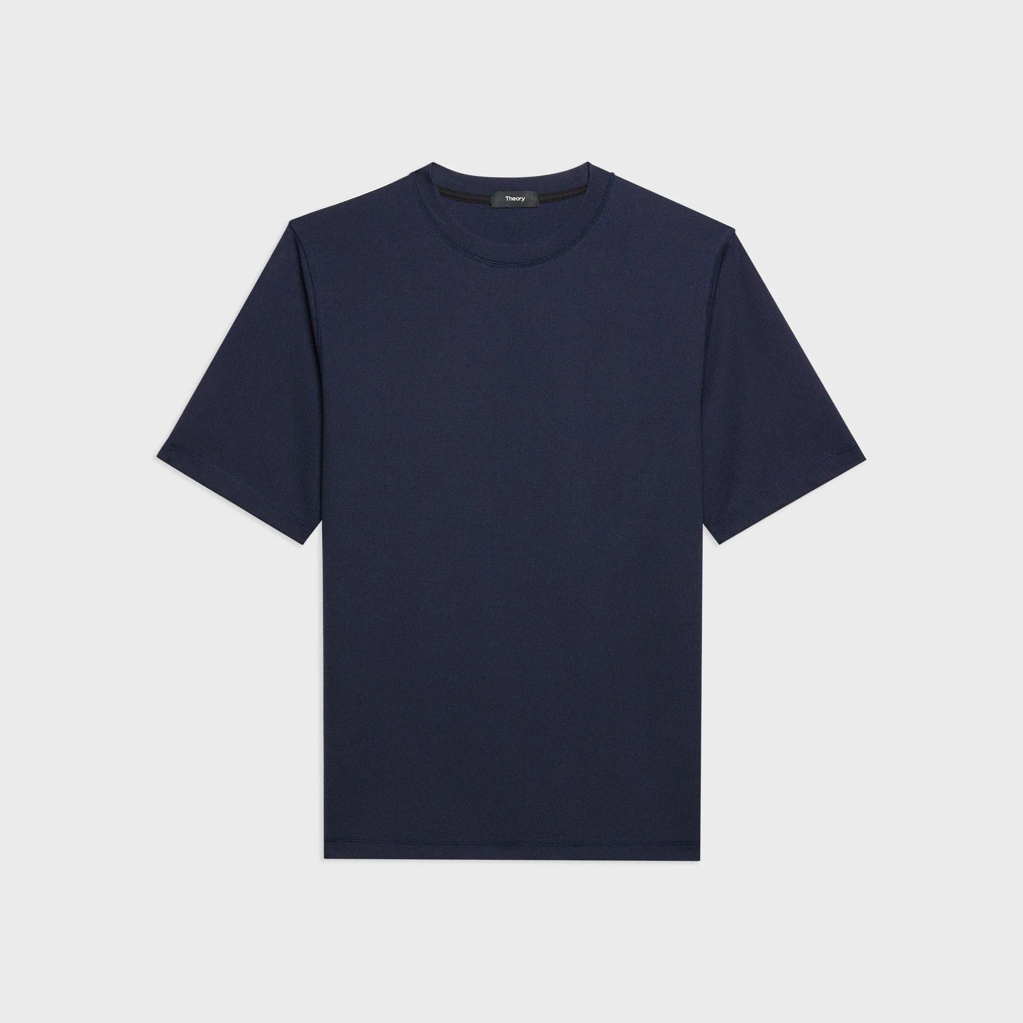 Please enter your email below to be notified when this item is in stock The Ryder crewneck tee is an elevated short-sleeve style that pairs as easily with tailored essentials as it does with your favorite denim. Sourced from responsibly managed forests, our viscose-blend jersey is a breathable, machine-washable knit that's made to move. Style #: M0196528 Please enter your email below to be notified when this item is in stock Fit True to size, choose your normal size Standard fit, short sleeves Regular length Model is 6’2”, chest 38” and wearing a US size M Discover the best fit for you on our. Materials & Care Composition 64% viscose 30% polyamide 6% elastane Care Machine wash warm, gentle cycle. Do not bleach. Do not tumble dry. Warm iron if needed. Dry clean with any solvent except trichloroethylene. Imported
