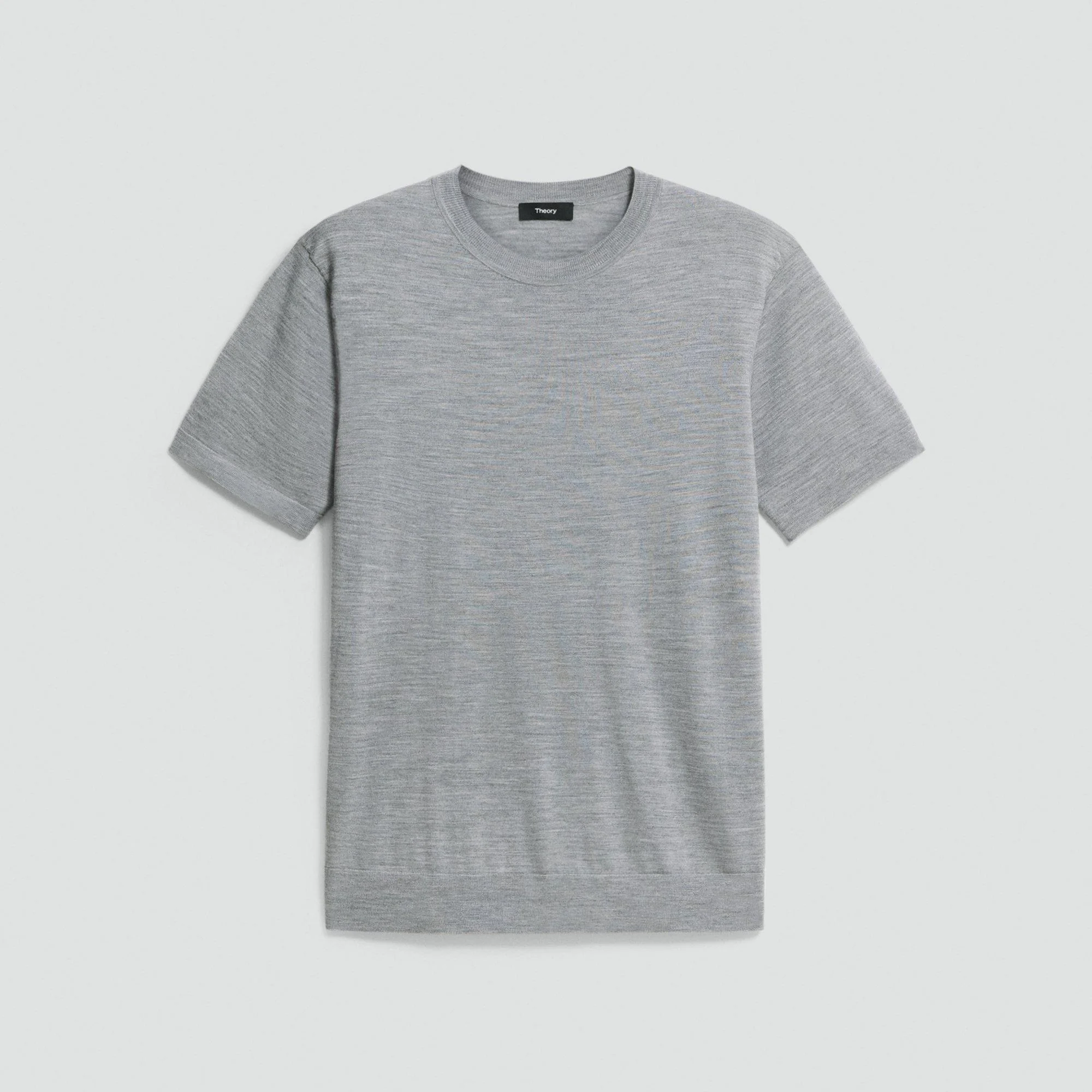Please enter your email below to be notified when this item is in stock Our classic crewneck tee fits intentionally for everyday wear. A luxurious upgrade to an essential style, it’s crafted in a fine-gauge merino wool from Australia that’s spun and knit in Italy. This single-origin sourced wool is fully traceable to Congi Farm, located in Woolbrook, New South Wales, Australia. This luxury yarn is produced by Botto Giuseppe, a forward-thinking mill and leader in sustainability, located in Biella, Italy. Style #: P0381704 Please enter your email below to be notified when this item is in stock Fit True to size, choose your normal size Regular length Model is 6’2”, chest 38” and wearing a US size M Discover the best fit for you on our. Materials & Care Composition 100% wool; exclusive of elastic Care Do not wash. Do not bleach. Do not tumble dry. Cool iron if needed. Dry clean with any solvent except trichloroethylene. Imported