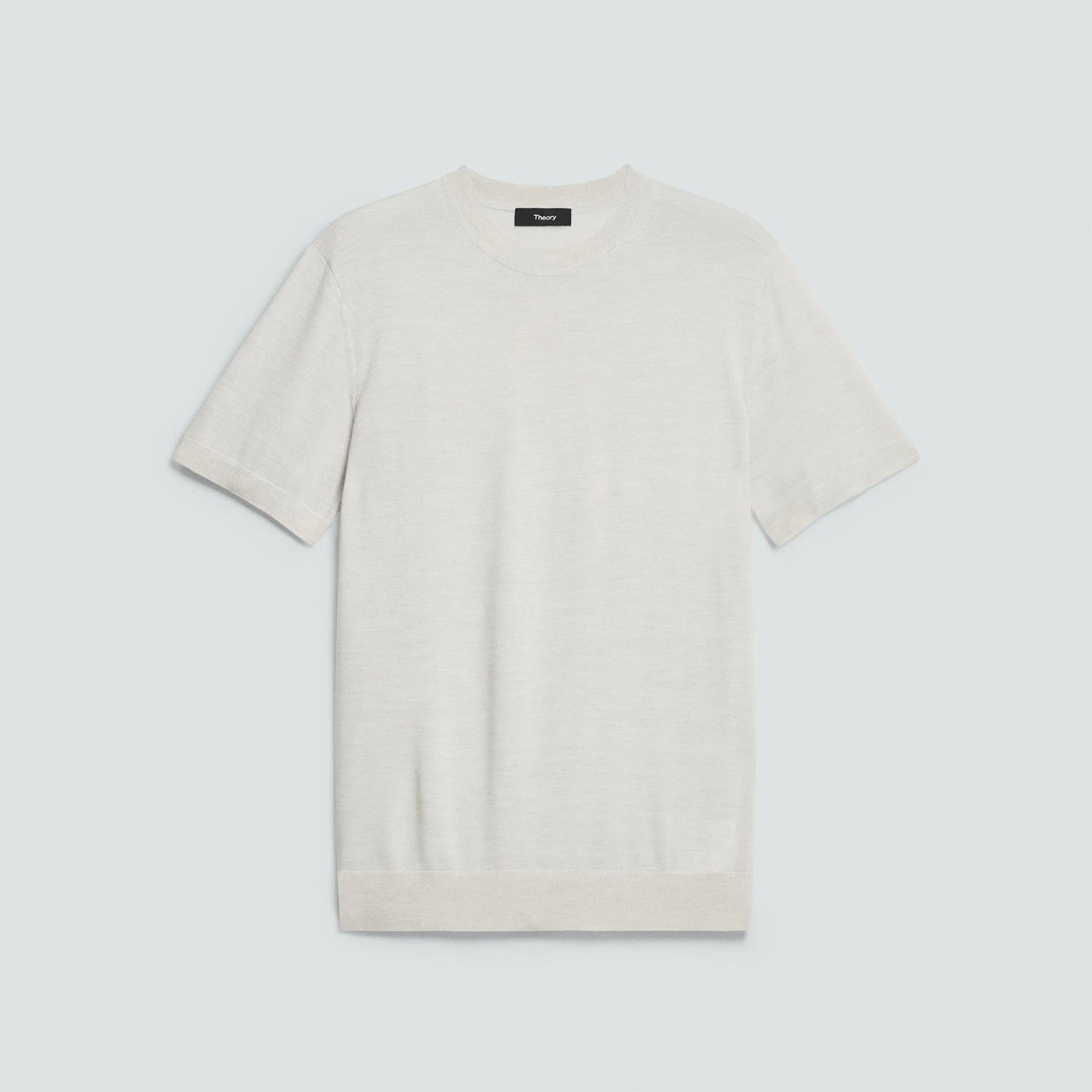 Please enter your email below to be notified when this item is in stock Our classic crewneck tee fits intentionally for everyday wear. A luxurious upgrade to an essential style, it’s crafted in a fine-gauge merino wool from Australia that’s spun and knit in Italy. This single-origin sourced wool is fully traceable to Congi Farm, located in Woolbrook, New South Wales, Australia. This luxury yarn is produced by Botto Giuseppe, a forward-thinking mill and leader in sustainability, located in Biella, Italy. Style #: P0381704 Please enter your email below to be notified when this item is in stock Fit True to size, choose your normal size Regular length Model is 6’2”, chest 38” and wearing a US size M Discover the best fit for you on our. Materials & Care Composition 100% wool; exclusive of elastic Care Do not wash. Do not bleach. Do not tumble dry. Cool iron if needed. Dry clean with any solvent except trichloroethylene. Imported