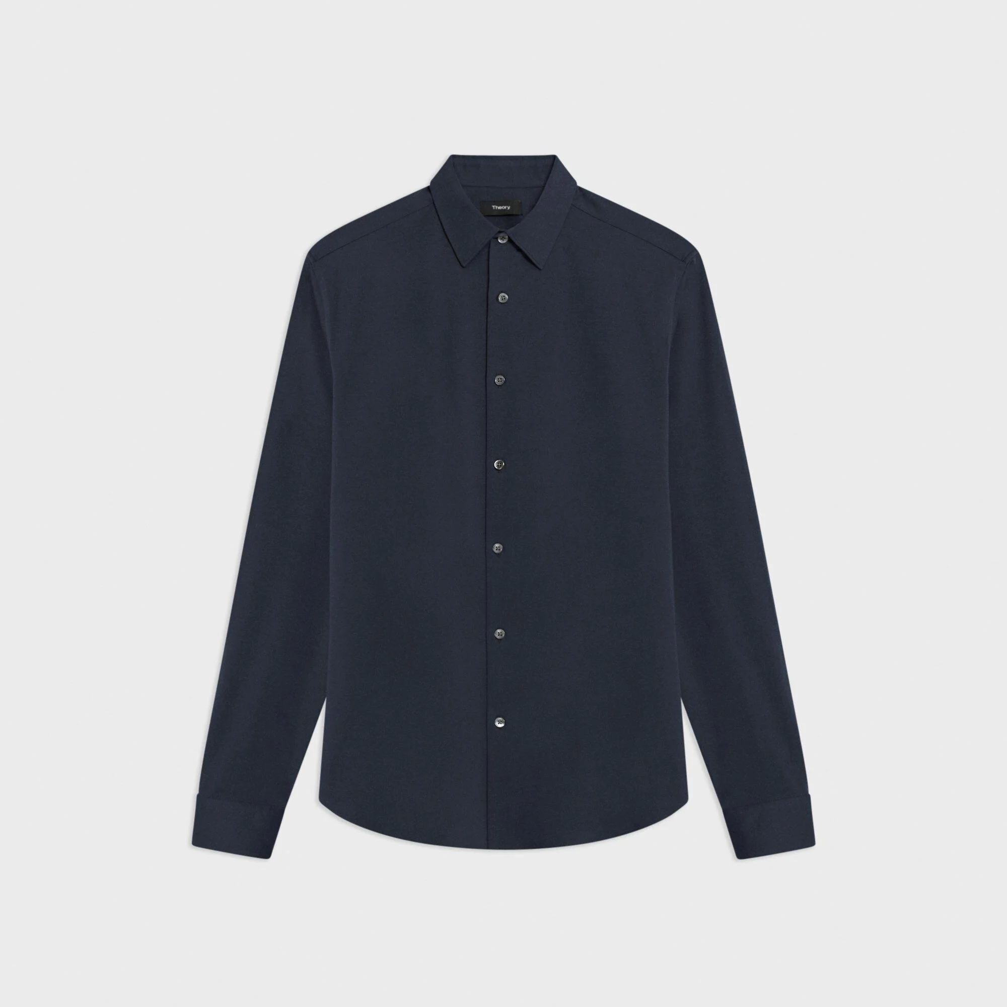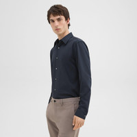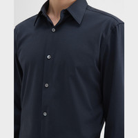 A tailored style with minimal detailing, our Sylvain shirt is designed with a structured point collar, and a longer hem that easily tucks into your pant. Cut from an ultra-compact knit with inherent stretch from one of Japan’s finest mills, it's designed for a comfortable, casual feel and a sharp look. This machine-washable fabric features a wrinkle-resistant construction for optimum shape retention throughout the day. Style #: J0794505 Fit True to size, choose your normal size Slim fit, long sleeves Hip length Model is 6’2”, chest 38” and wearing a US size M Materials & Care Composition 53% cotton 47% polyester Care Machine wash cold, gentle cycle. Only non-chlorine bleach when needed. Hang to dry in shade, do not tumble dry. Cool iron with press cloth if needed. Dry clean with any solvent except trichloroethylene. Imported