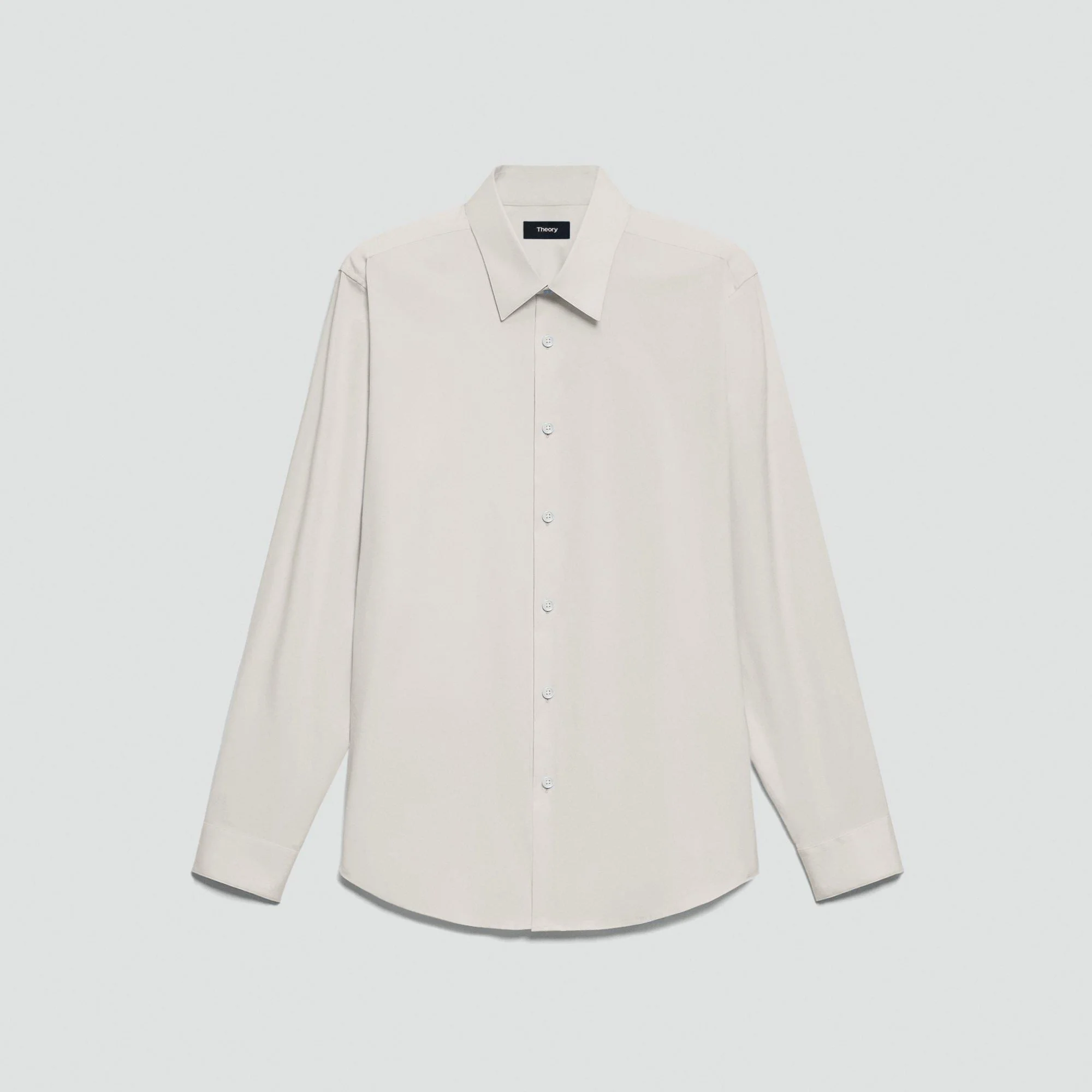 Please enter your email below to be notified when this item is in stock A tailored style with minimal detailing, our Sylvain shirt is designed with a structured point collar, two darts in the back for a refined fit, and an extended hem that easily tucks into your pants. It's cut from our stretch Good Cotton that looks crisp and keeps you comfortable year round. Theory for Good We are committed to making a positive impact on the people who wear our clothes, our industry, and our planet, beginning with our Good fabrics. Our Good Cotton is made with extra-long staple, American-grown SUPIMA® cotton, which is recognized as one of the softest and most durable cottons in the world. To ensure this cotton is verifiably traceable, we have partnered with Oritain™, which uses forensic science to validate our SUPIMA® cotton from the farm to the mill in Italy where it is woven into cloth. Learn more about our Good Cotton. Style #: A0674535 Please enter your email below to be notified when this item is in stock Fit True to size, choose your normal size Slim fit, long sleeves Regular length Model is 6’2”, chest 38” and wearing a US size M Discover the best fit for you on our. Materials & Care Composition 78% cotton 18% polyamide 4% elastane Care Machine wash warm, gentle cycle. Do not bleach. Do not tumble dry. Warm iron if needed. Dry clean with any solvent except trichloroethylene. Imported