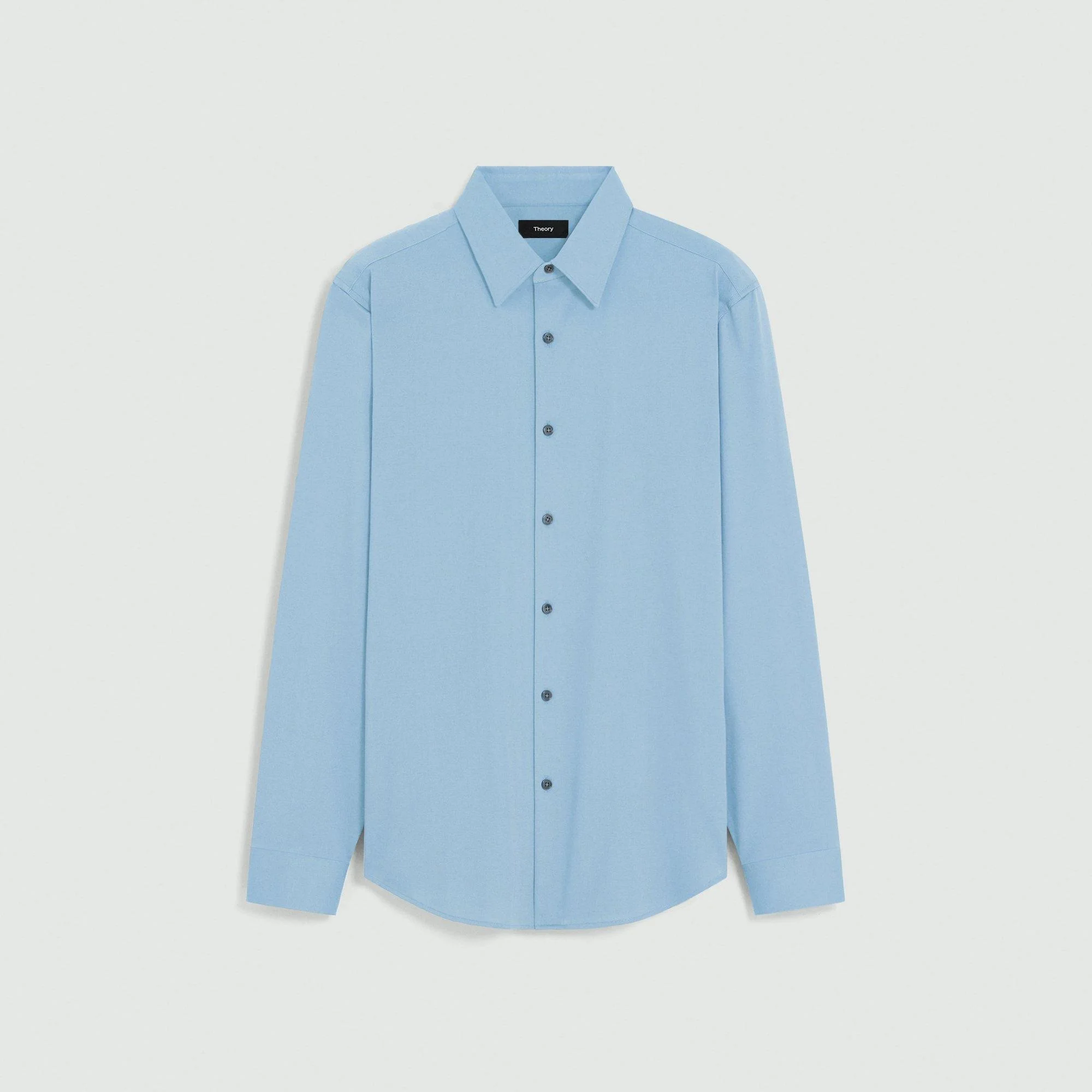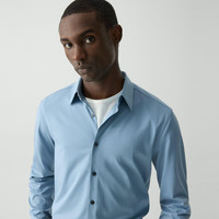A tailored style with minimal detailing, our Sylvain shirt is designed with a structured point collar, and a longer hem that easily tucks into your pant. Cut from an ultra-compact knit with inherent stretch from one of Japan’s finest mills, it's designed for a comfortable, casual feel and a sharp look. This machine-washable fabric features a wrinkle-resistant construction for optimum shape retention throughout the day. Style #: J0794505 Fit True to size, choose your normal size Slim fit, long sleeves Hip length Model is 6’2”, chest 38” and wearing a US size M Materials & Care Composition 53% cotton 47% polyester Care Machine wash cold, gentle cycle. Only non-chlorine bleach when needed. Hang to dry in shade, do not tumble dry. Cool iron with press cloth if needed. Dry clean with any solvent except trichloroethylene. Imported
